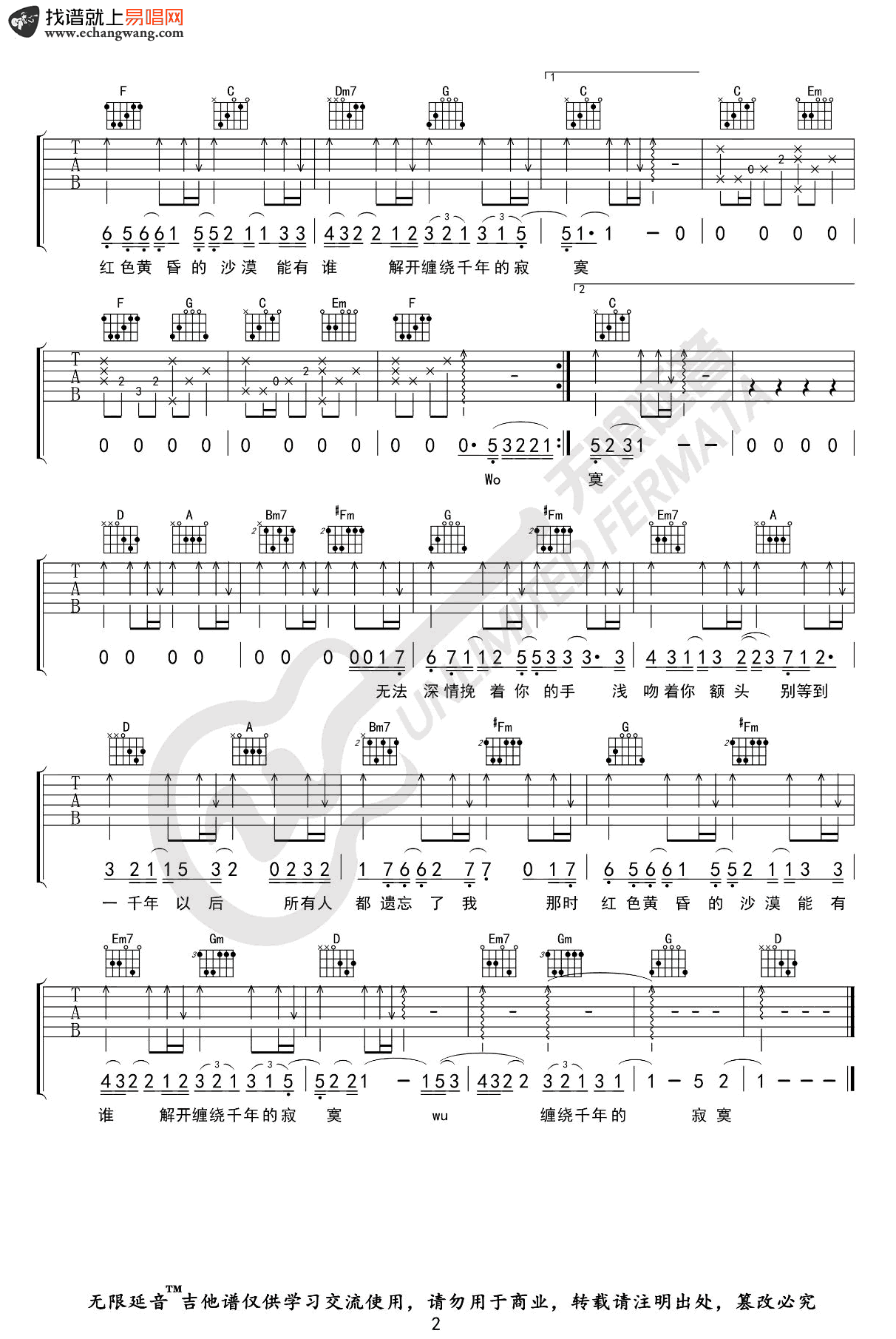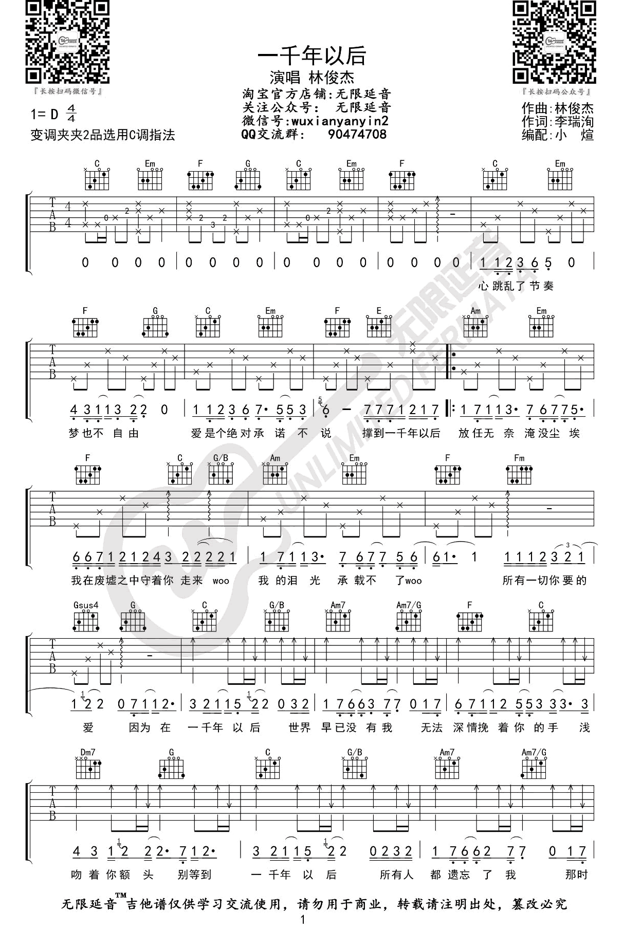 - 一千年以后吉他谱_C调六线谱_林俊杰_弹唱谱