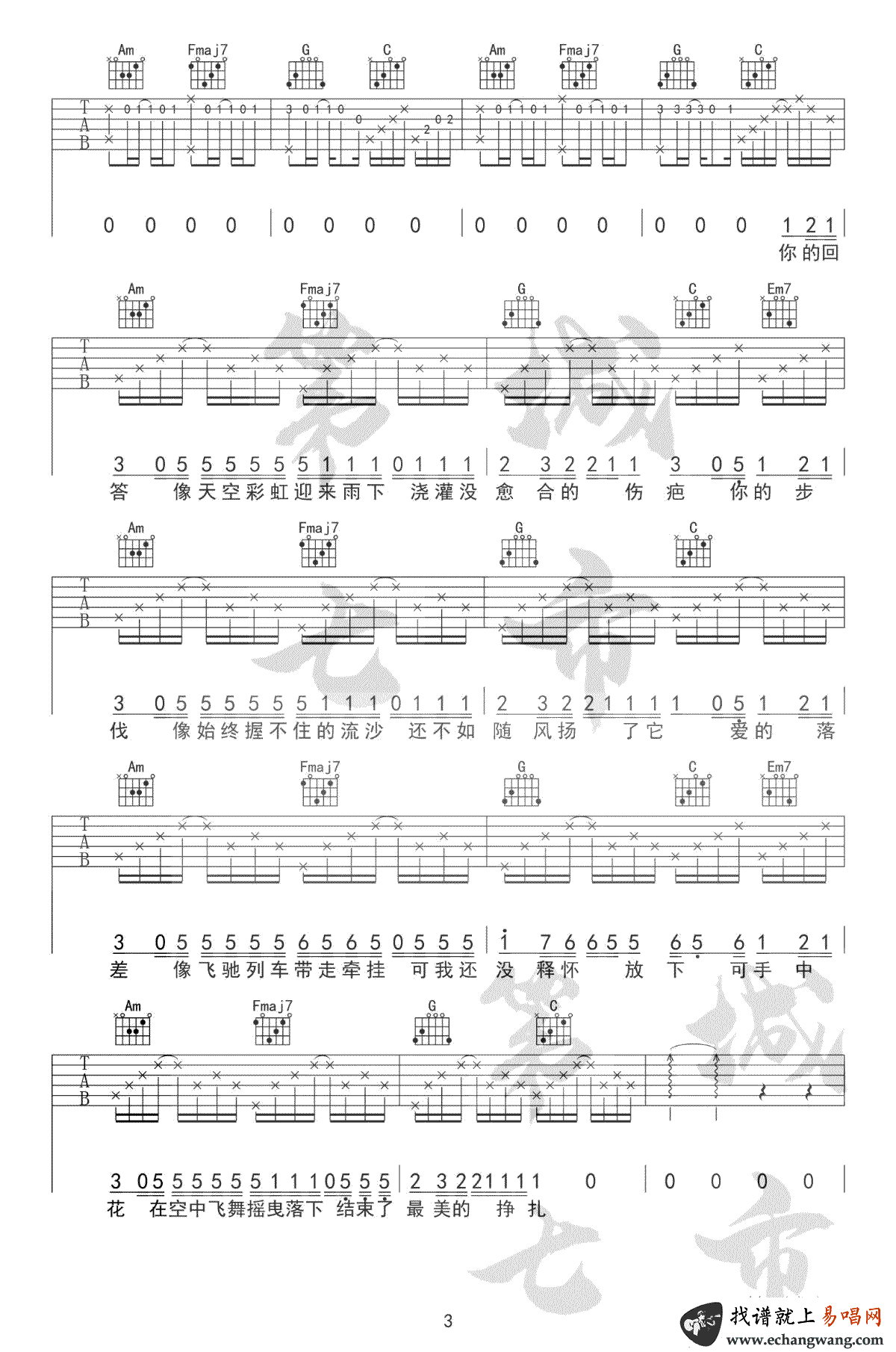 - 三号线吉他谱_刘大壮_C调弹唱谱_完整版六线谱