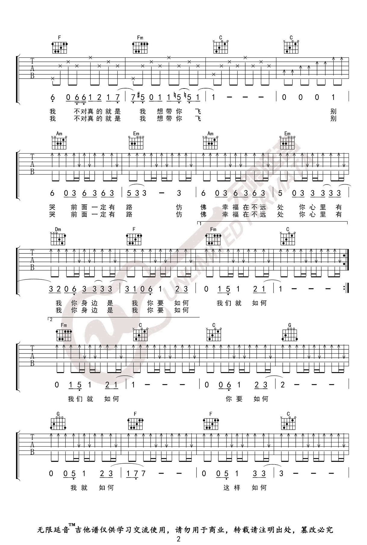 - 余佳运《和你》吉他谱_C调原版_高清六线谱