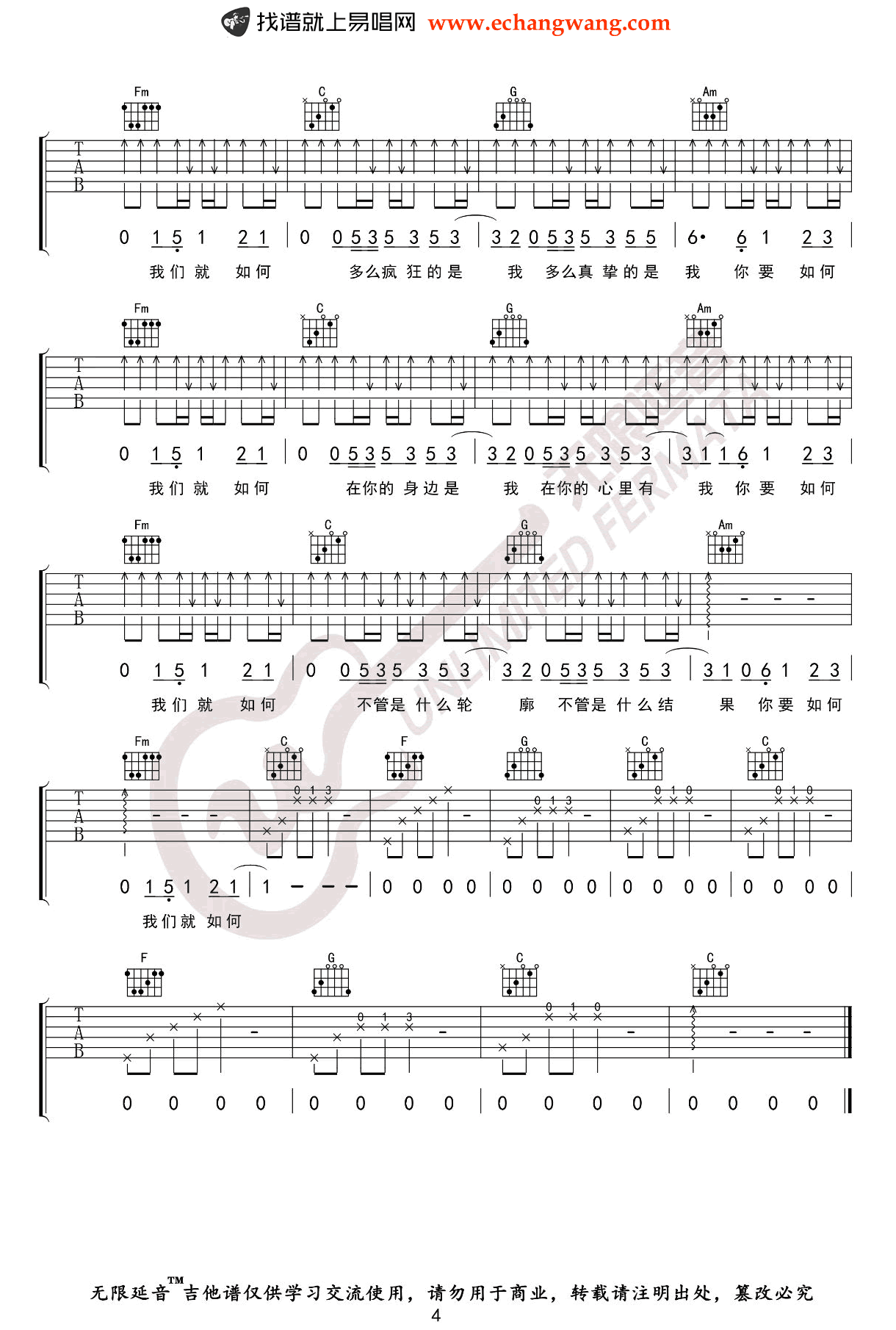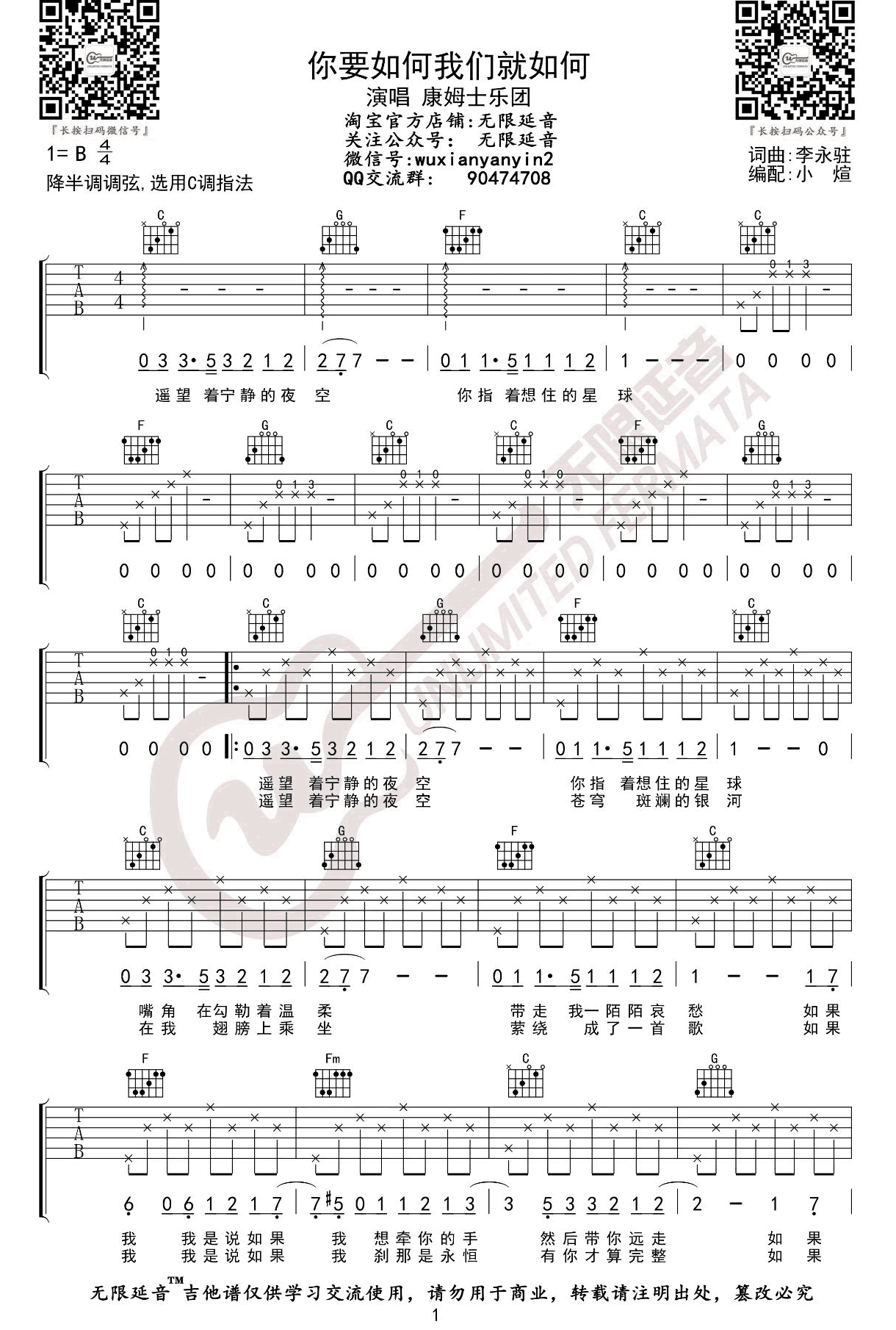 - 你要如何我们就如何吉他谱_C调弹唱谱_康姆士乐团_六线谱