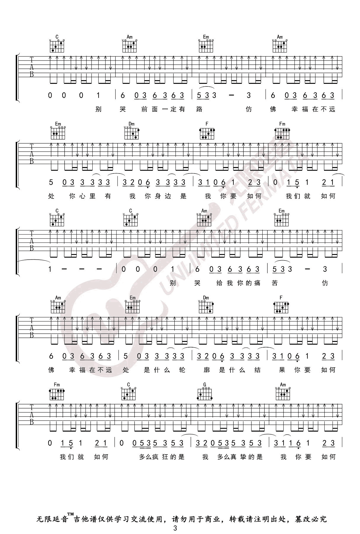 - 三号线吉他谱_刘大壮_C调弹唱谱_完整版六线谱