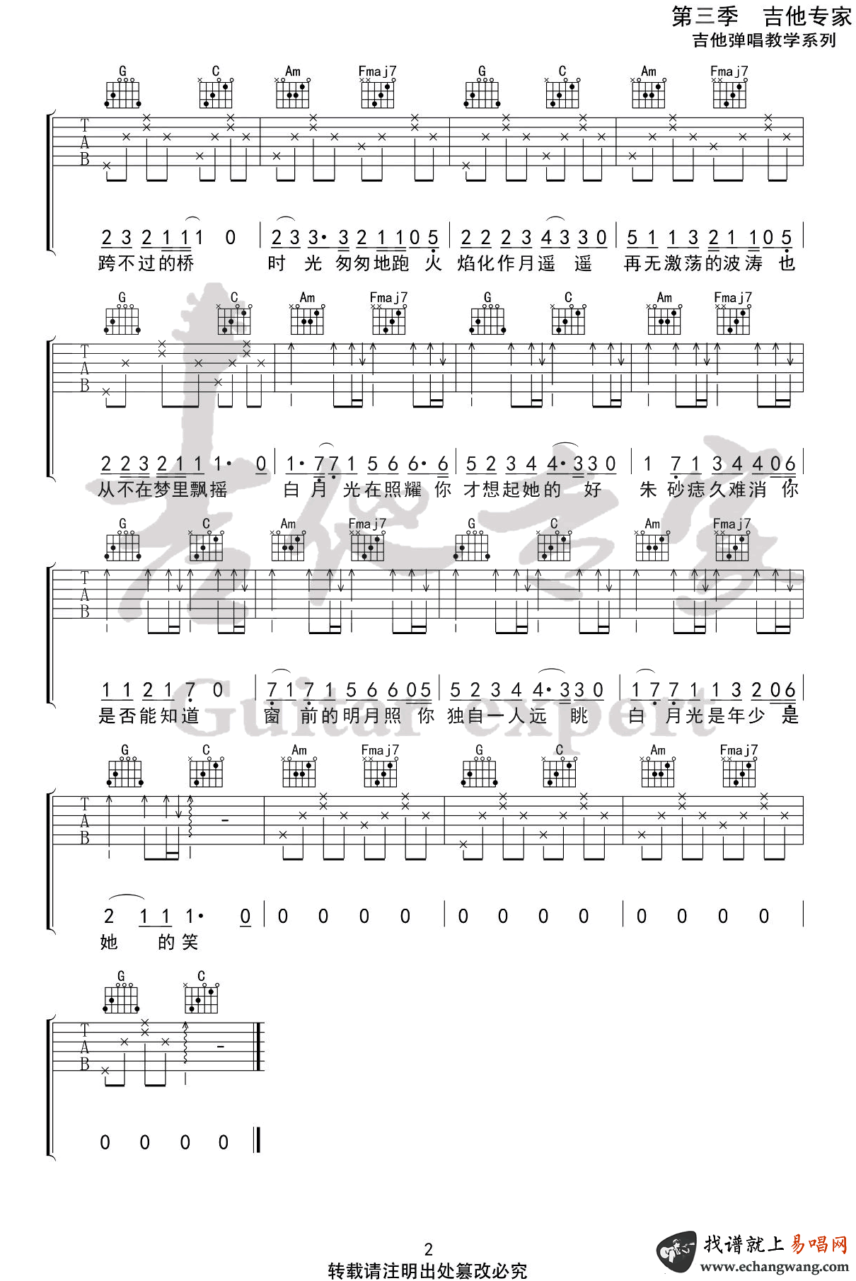 - 白月光与朱砂痣吉他谱_C调简易版_大籽_弹唱谱