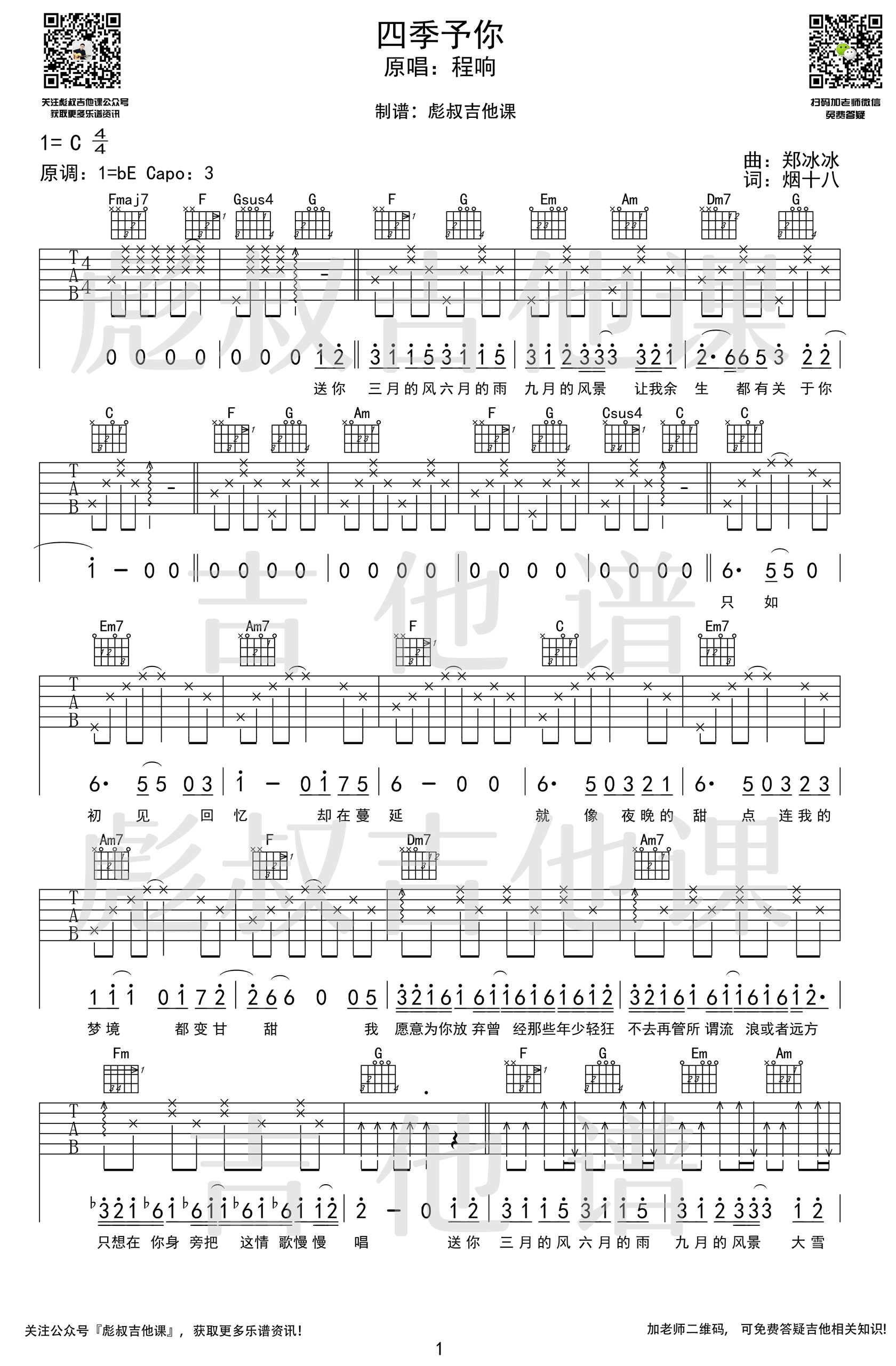 - 四季予你吉他谱_C调简单版_程响_弹唱图片谱