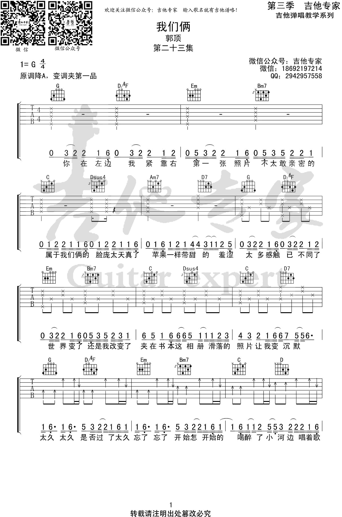 - 我们俩吉他谱_郭顶_G调弹唱谱_完整六线谱