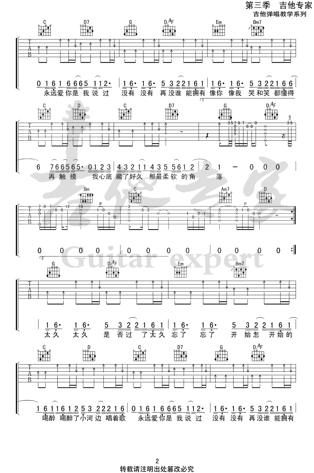 - 错季吉他谱_秋原依《错季》C调弹唱谱_高清六线谱