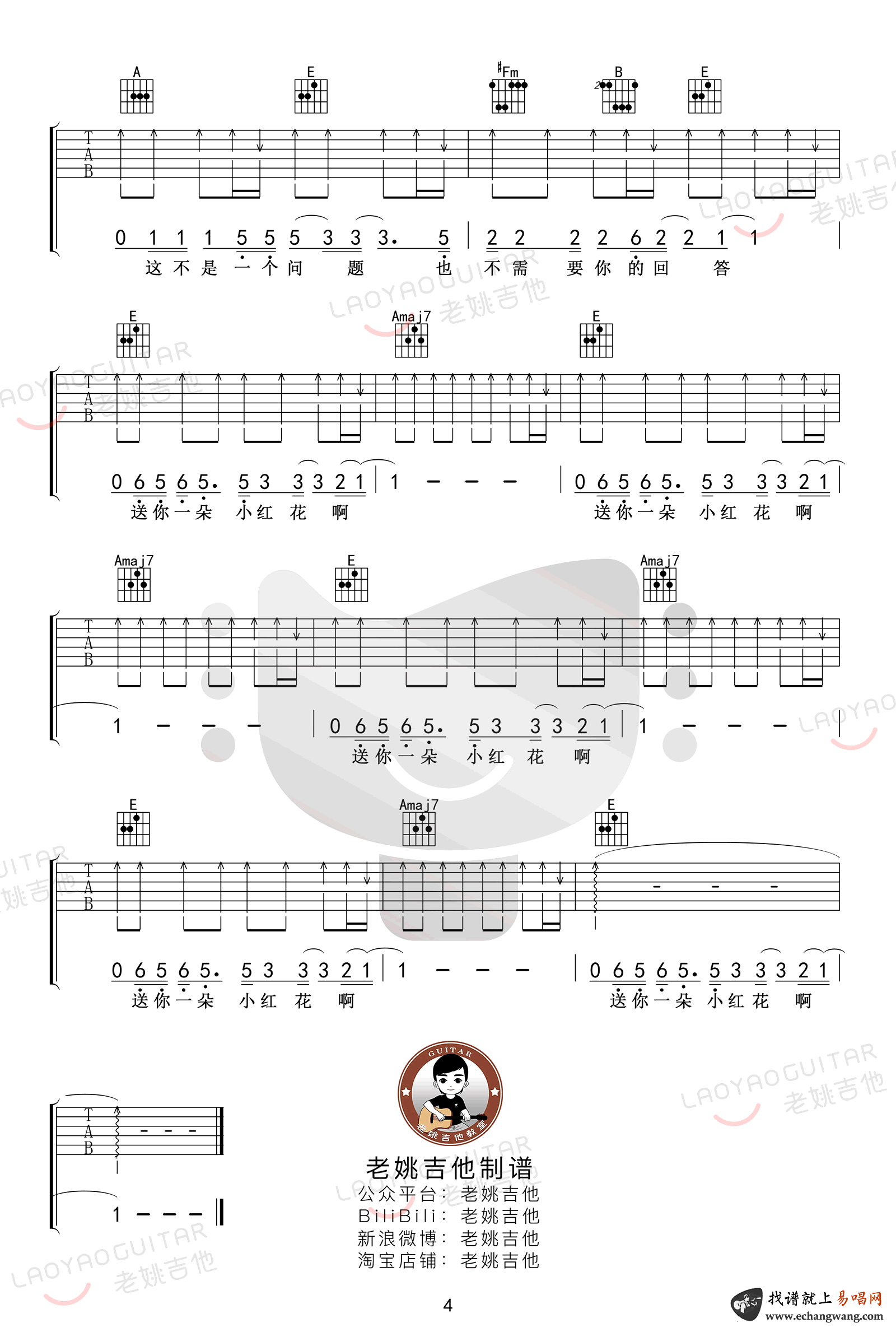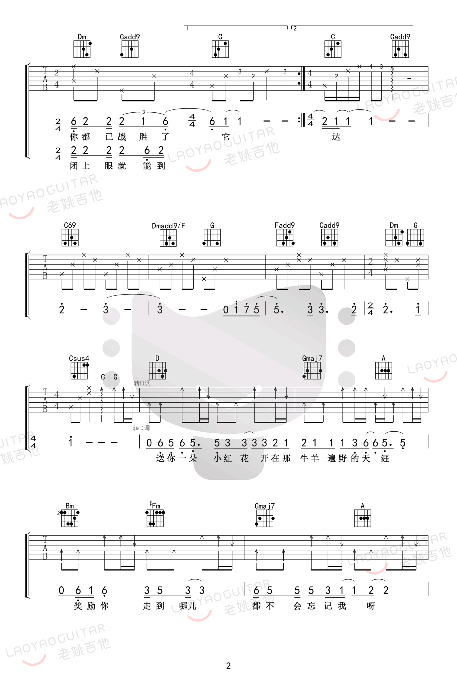 - 送你一朵小红花吉他谱_赵英俊_G调原版_弹唱六线谱