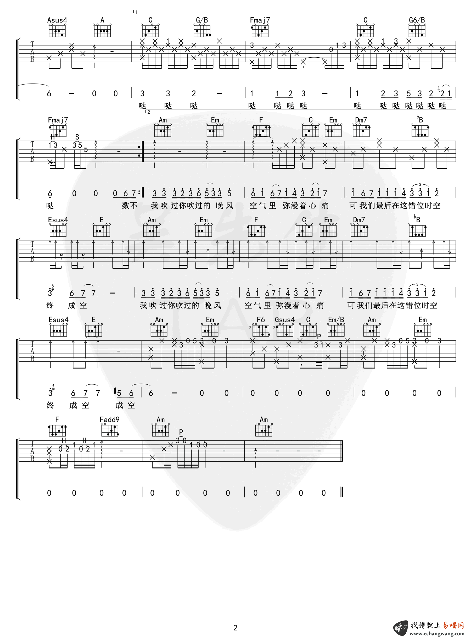 - 错位时空吉他谱_艾辰_C调_弹唱谱_高清图片谱
