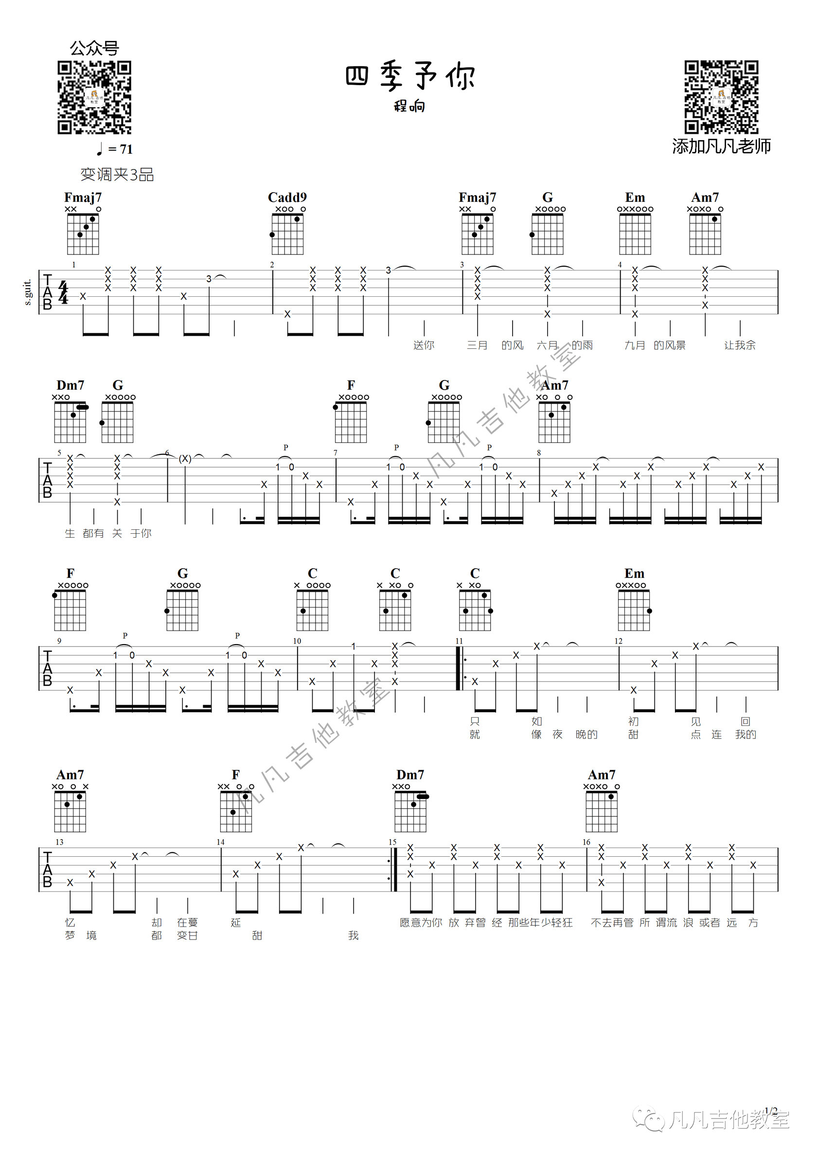 - 四季予你吉他谱_C调简单版_程响_弹唱图片谱