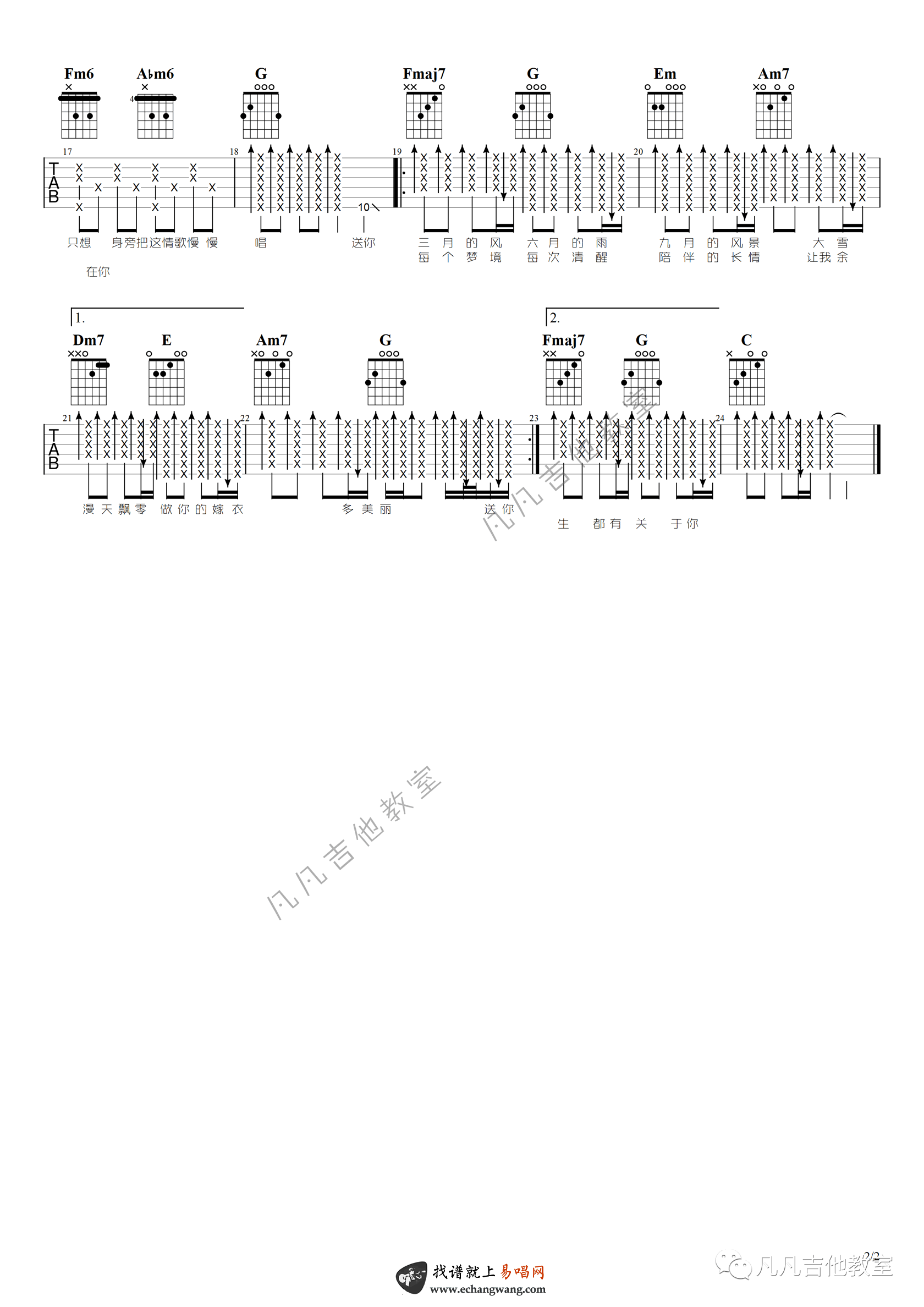 一首清新温暖的治愈歌曲,唱出对于美好爱情的向往和追求。随谱附上吉他弹唱视频,感谢凡凡吉他教室出品,琴友们可以参照演示练习。