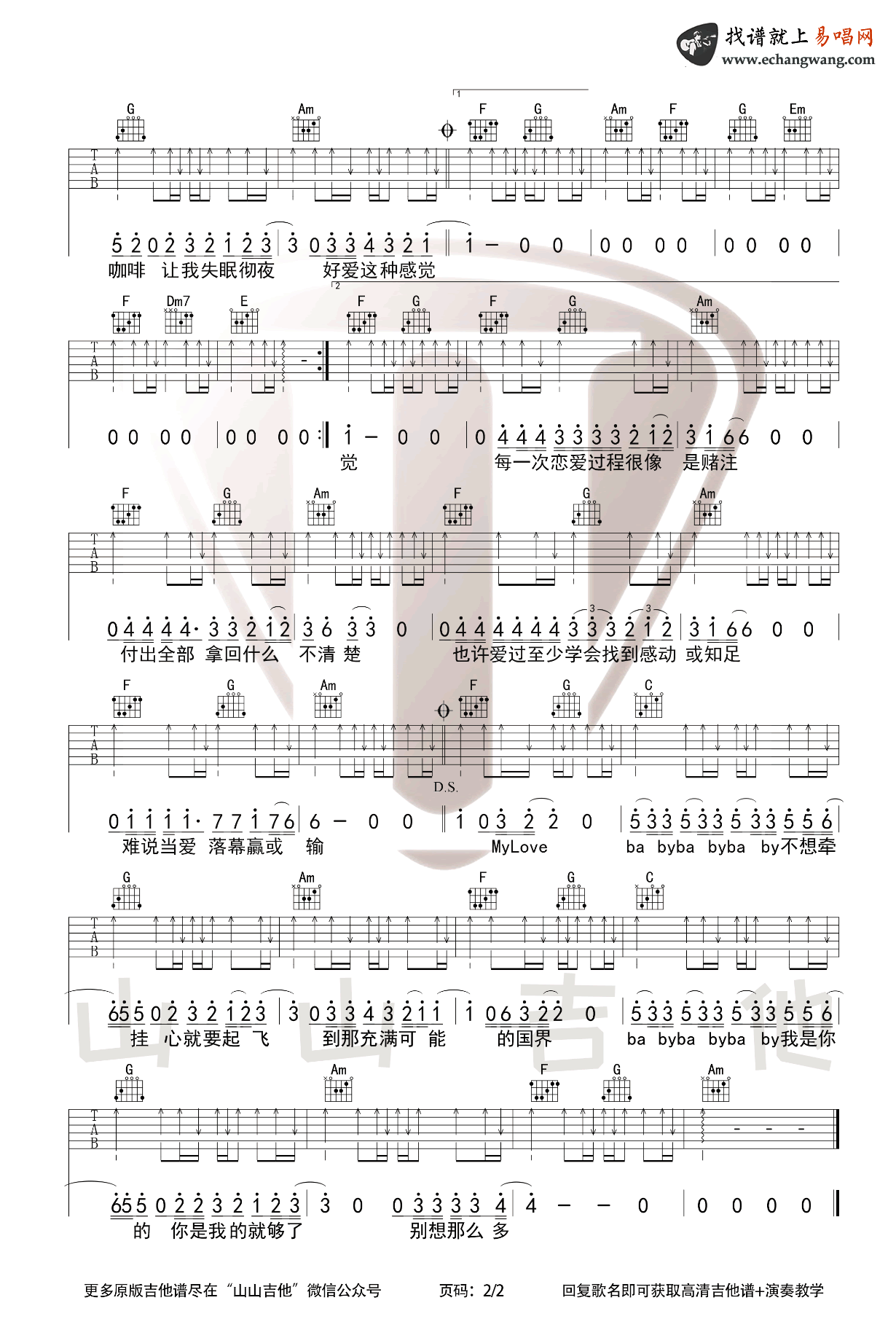 - 余佳运《和你》吉他谱_C调原版_高清六线谱