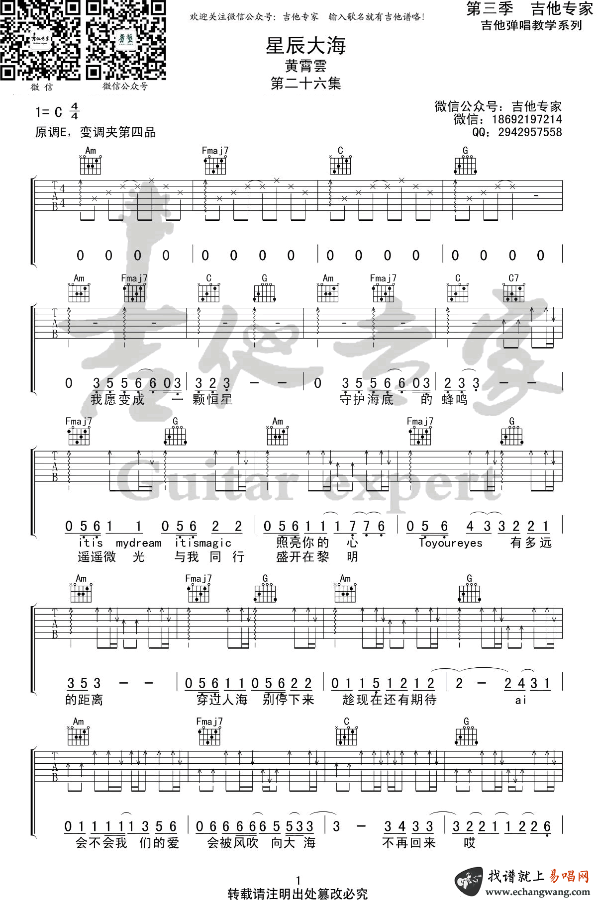 - 星辰大海吉他谱_黄霄云_C调原版_弹唱六线谱