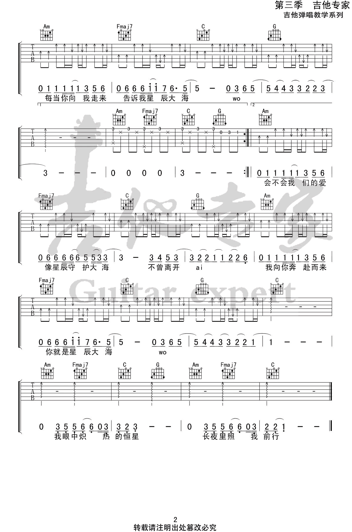 - 星星在唱歌吉他谱_司南_C调弹唱谱_高清六线谱