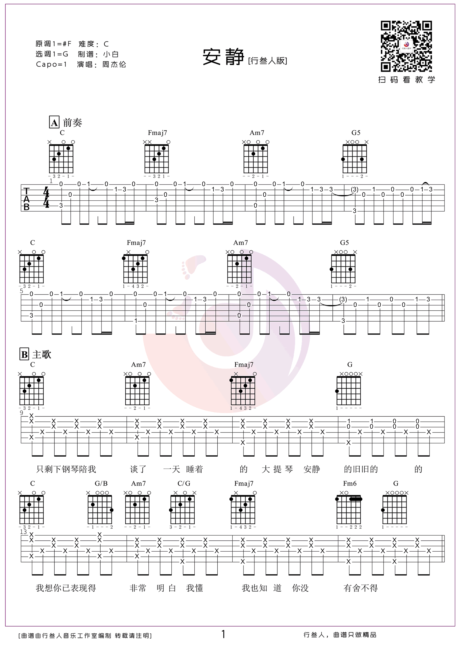 - 周杰伦《安静》吉他谱_C调弹唱谱_男生版