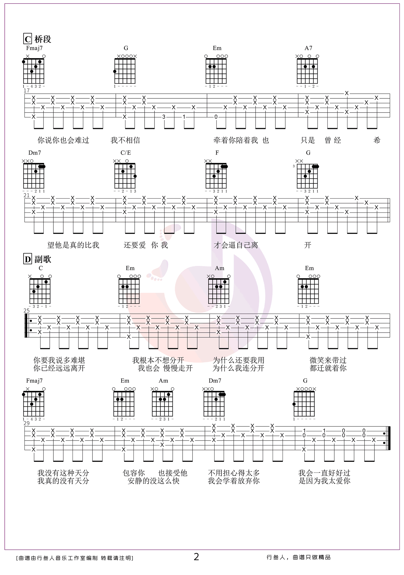 - 四季予你吉他谱_程响_C调指法编配_弹唱六线谱