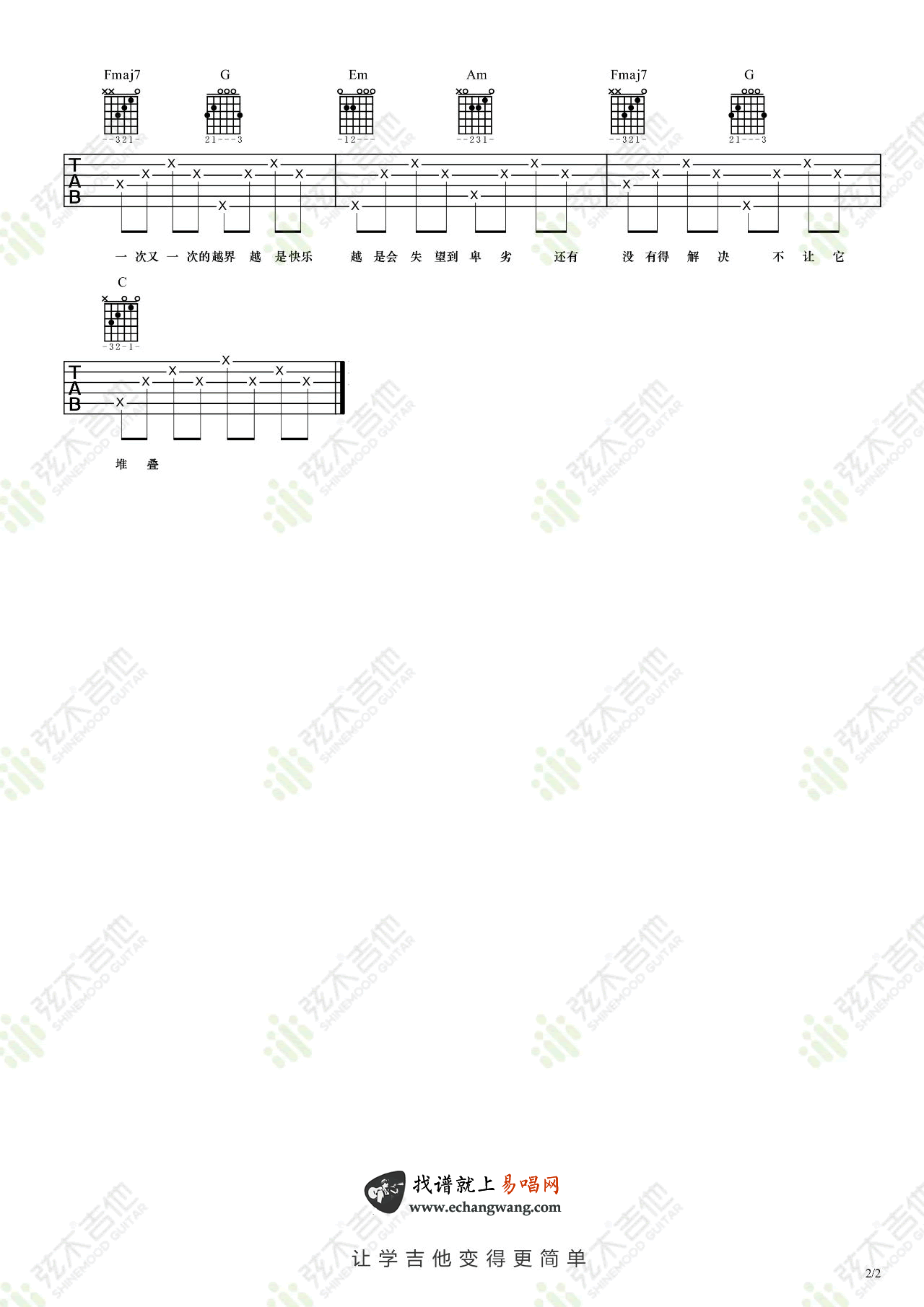 - 错位时空吉他谱_C调_艾辰_弹唱六线谱