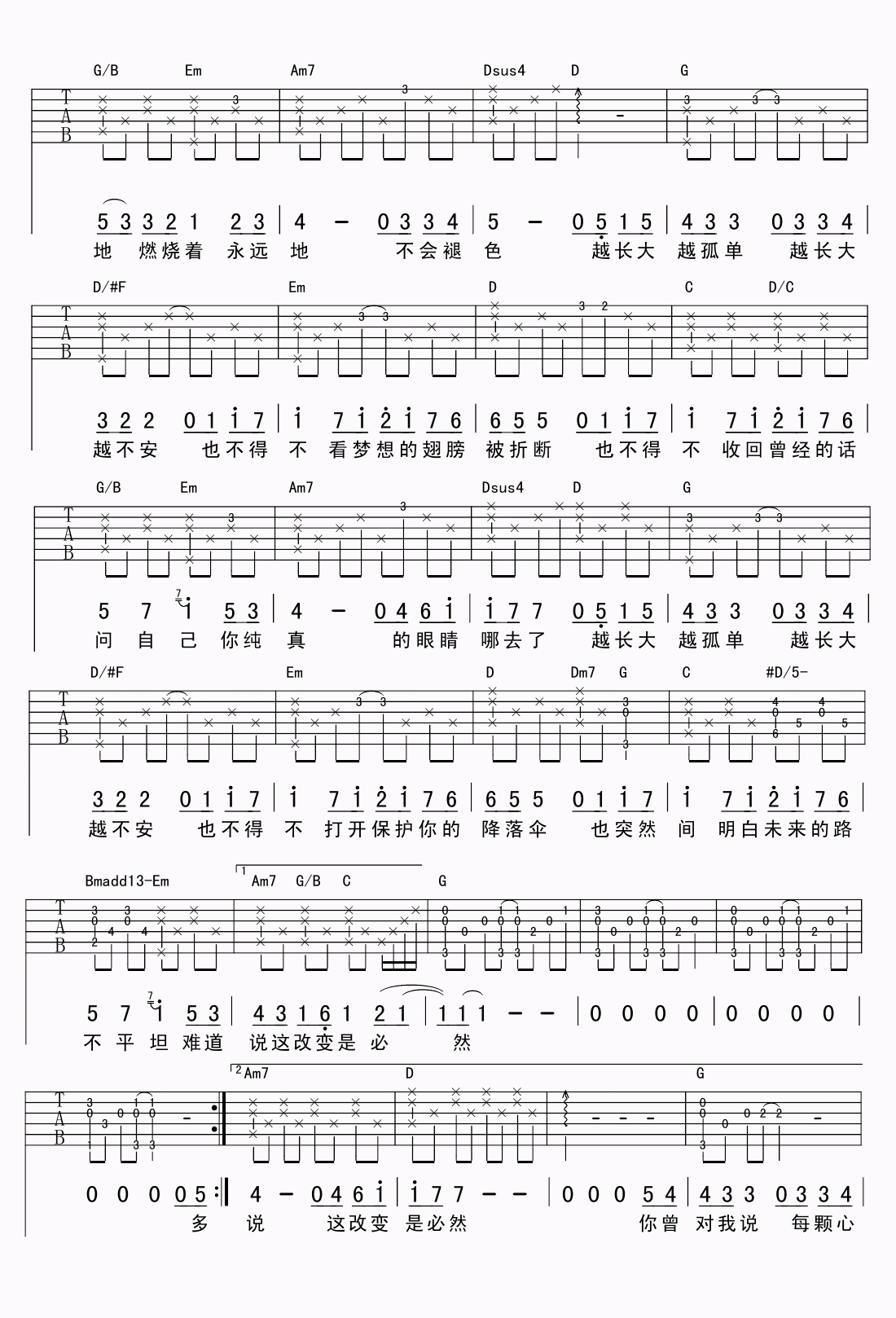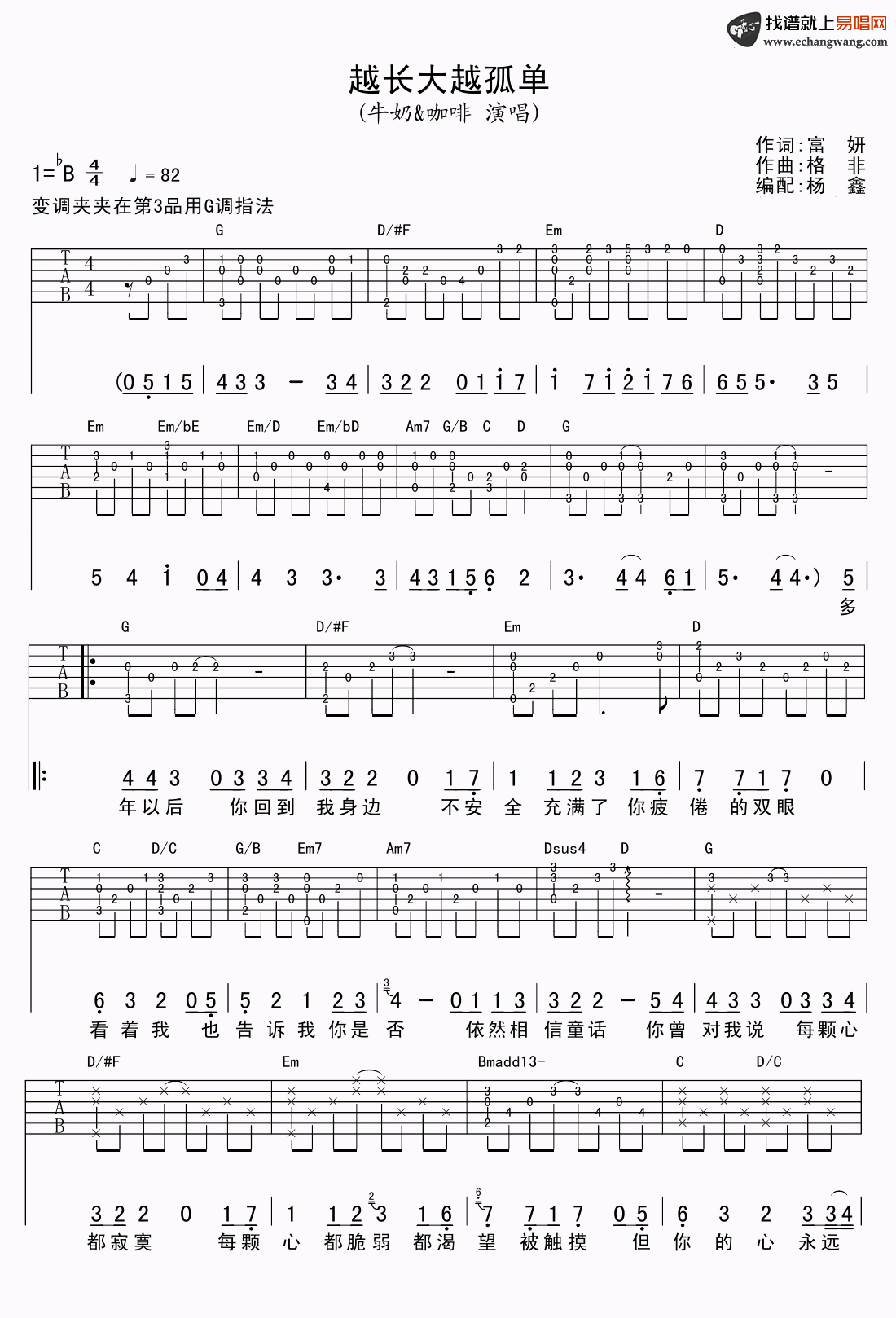 - 越长大越孤单吉他谱_G调_牛奶咖啡_弹唱六线谱