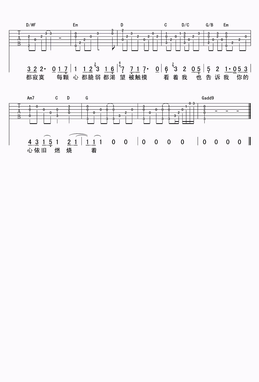 - 渐冷吉他谱_雪二《渐冷》C调弹唱_原版六线谱