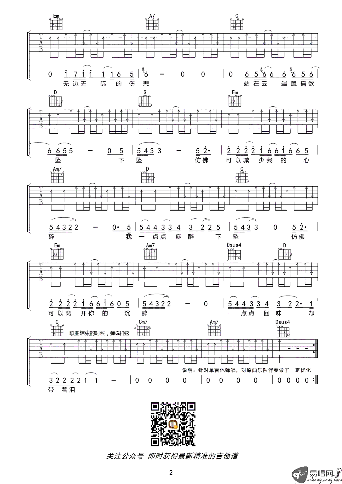- 飞得更高吉他谱 汪峰 G调扫弦版 适合初学者练习拨片