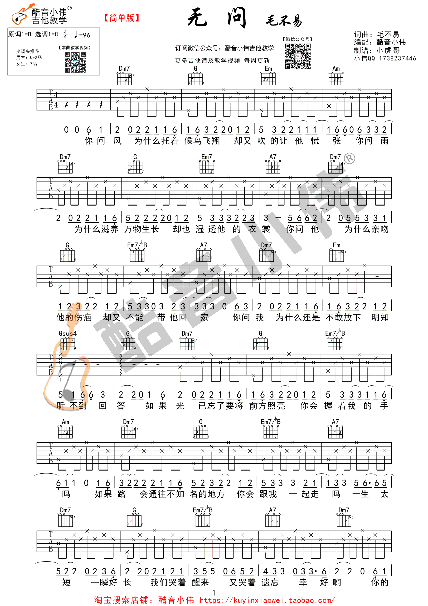 - 无问吉他谱 毛不易《无问西东》电影主题曲 和弦弹唱谱