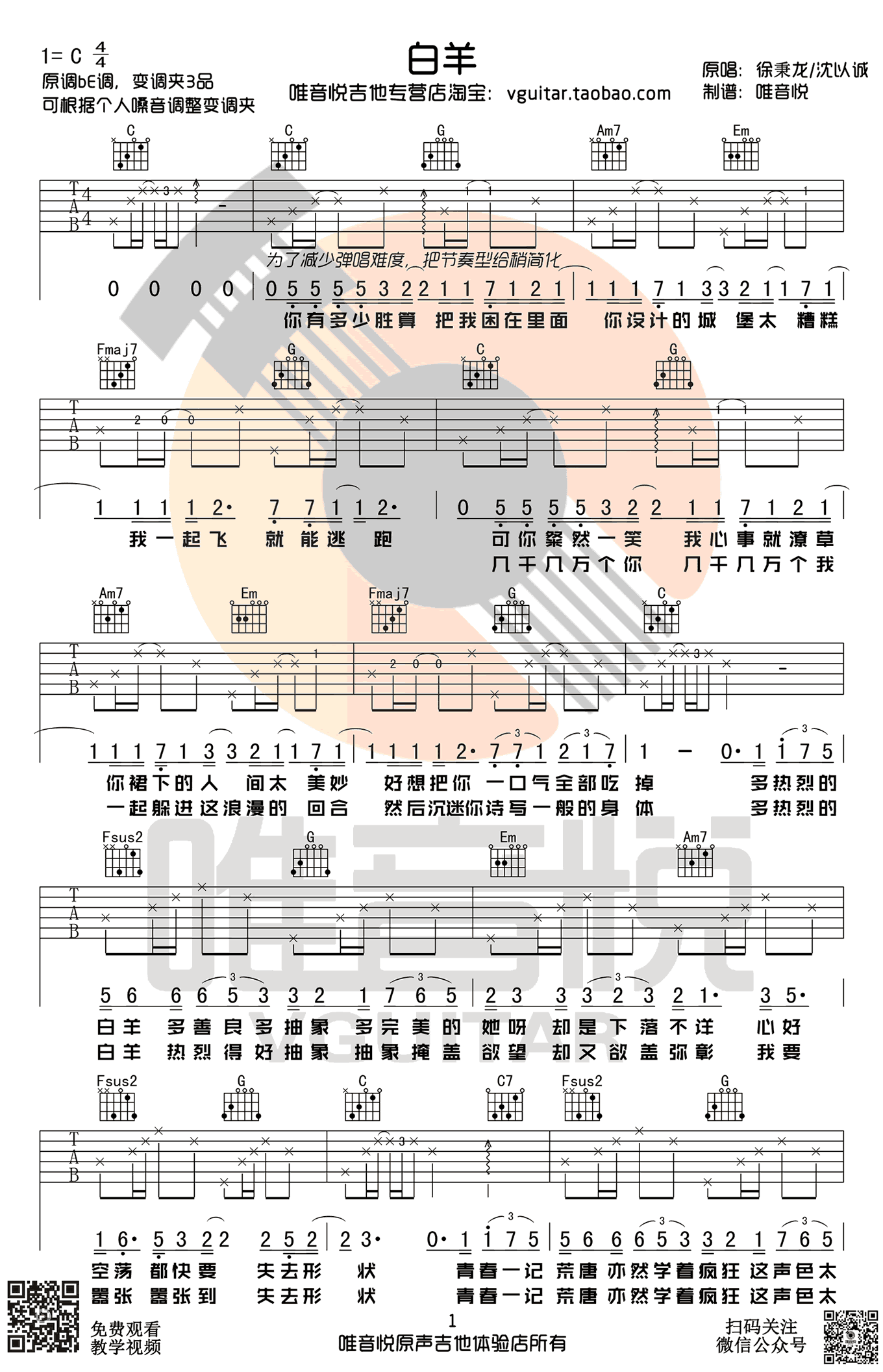 - 白雪花吉他谱 深深 C调弹唱谱 《白雪花》六线谱