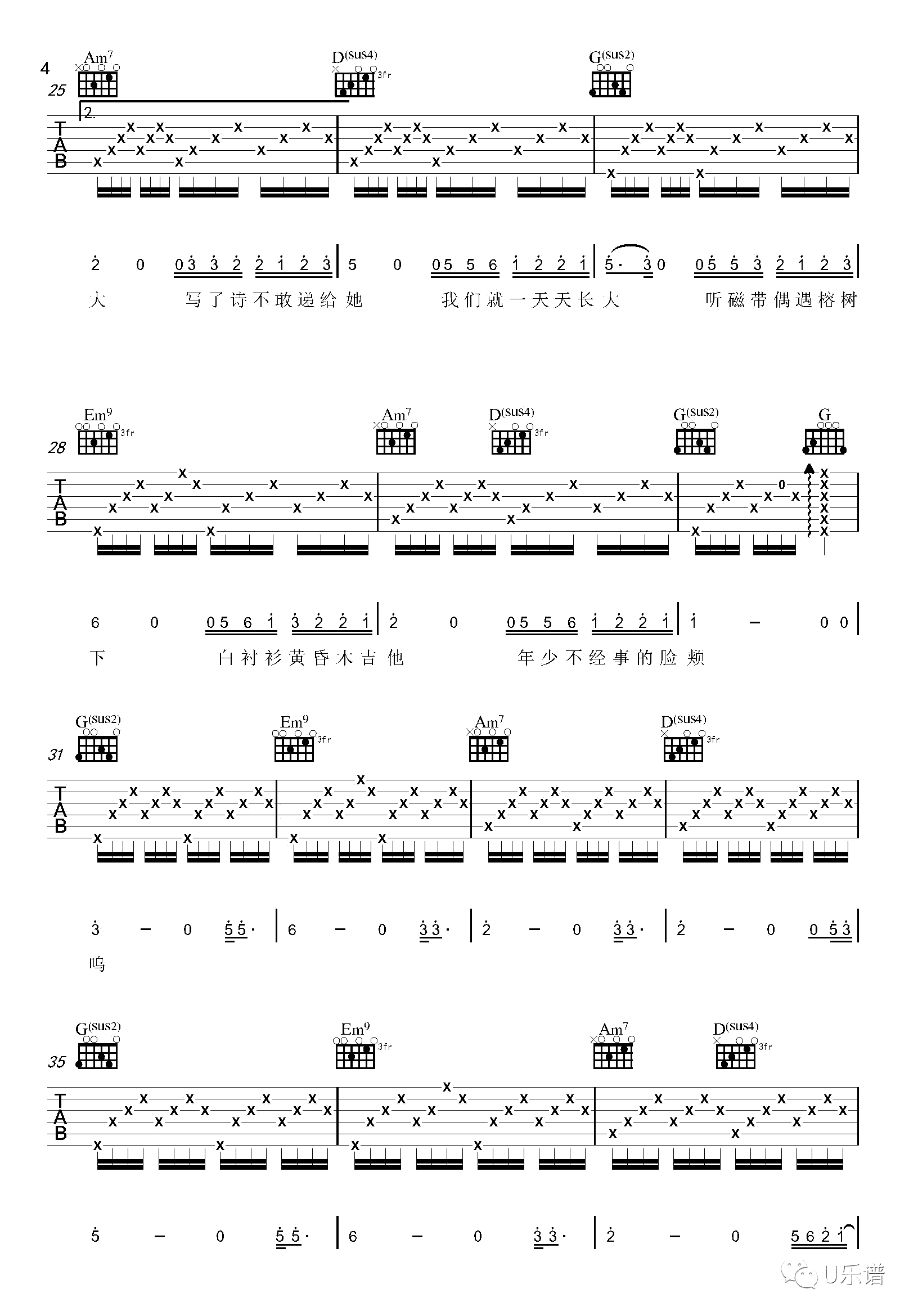 - 给你吉他谱 茶季杨《给你》六线谱 G调弹唱谱 吉他教学视频