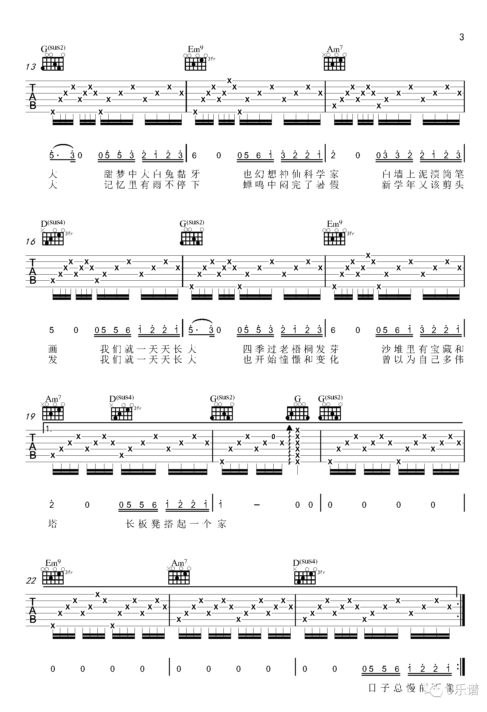 - Little Song吉他谱 向日葵乐队 G调弹唱谱 手写六线谱