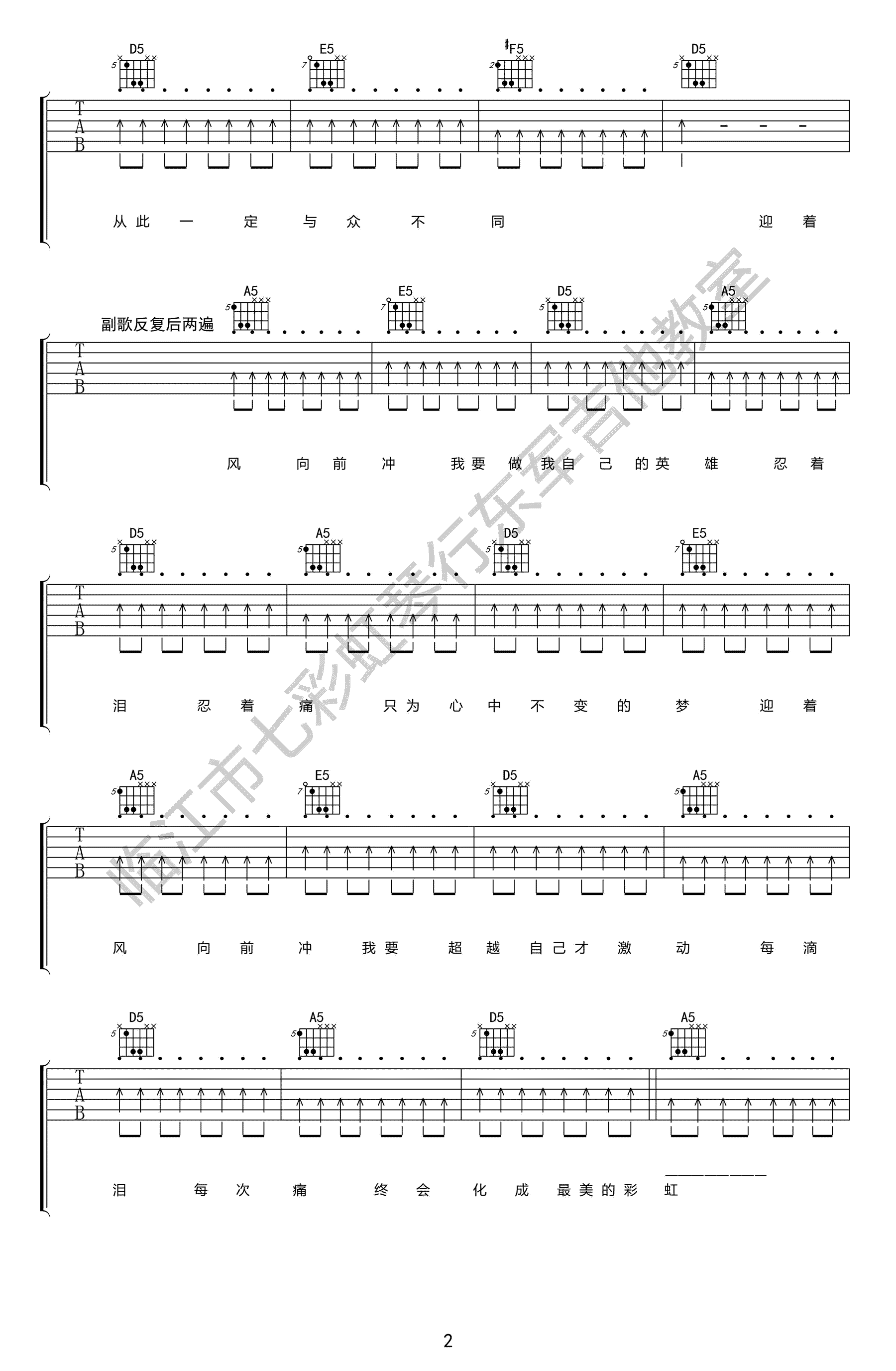 - 广东爱情故事吉他谱 广东雨神 D调弹唱谱 图片谱高清版