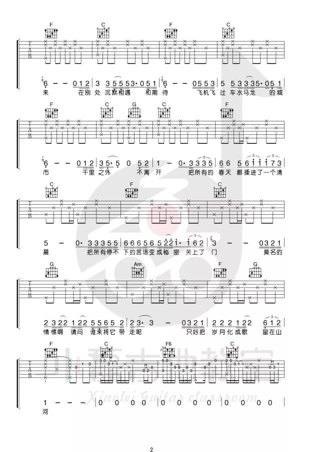 - 樱花东街吉他谱 王华峰 C调弹唱谱 高清六线谱