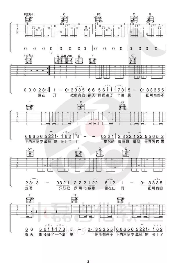 - 白雪花吉他谱 深深 C调弹唱谱 《白雪花》六线谱