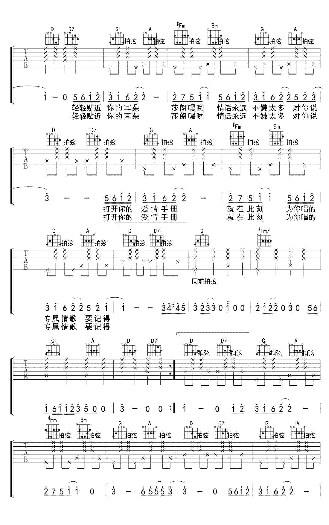 - 广东爱情故事吉他谱 广东雨神 D调弹唱谱 图片谱高清版