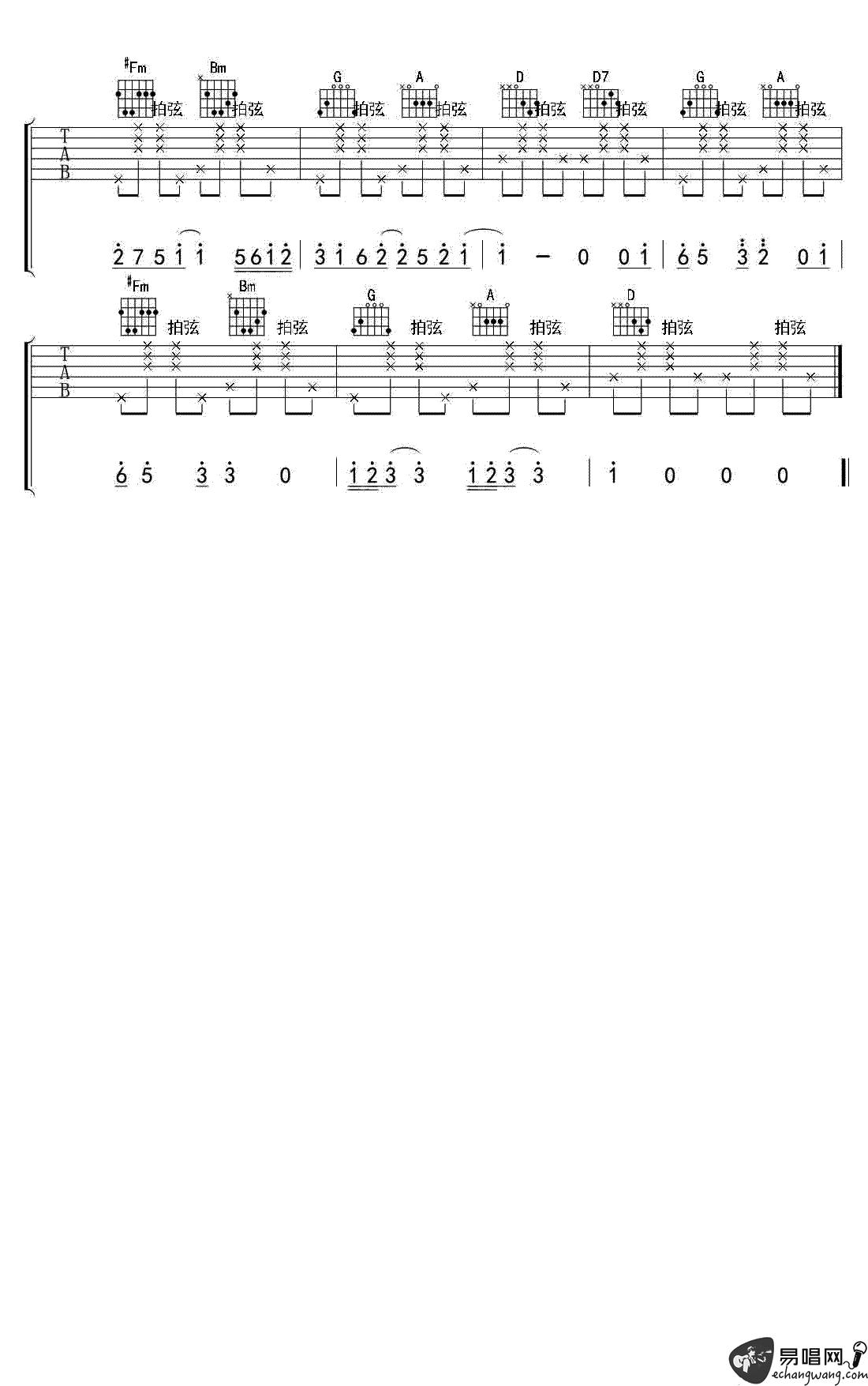 - 拥抱你离去吉他谱 张北北 G调弹唱谱 高清六线谱