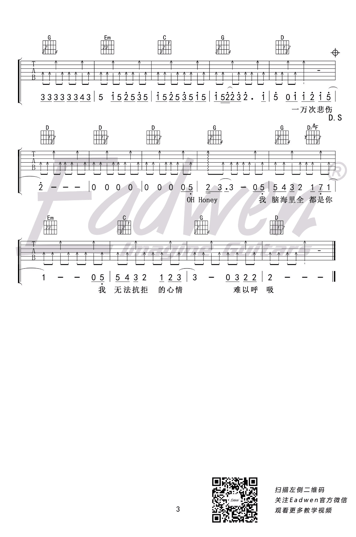 - 一万次悲伤吉他谱 逃跑计划乐队 G调六线谱 高清弹唱谱