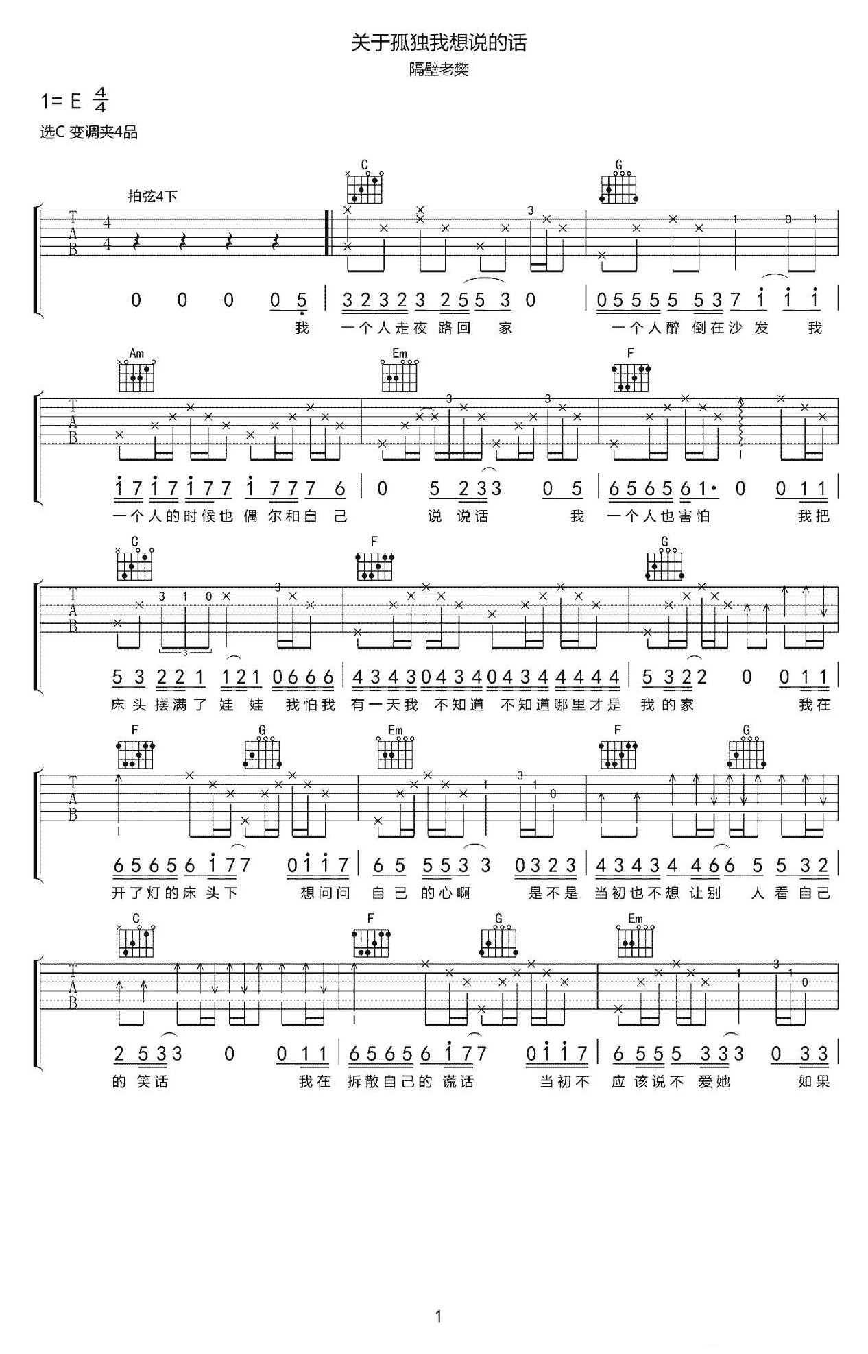 - 薛之谦《方圆几里》吉他谱_C调弹唱谱