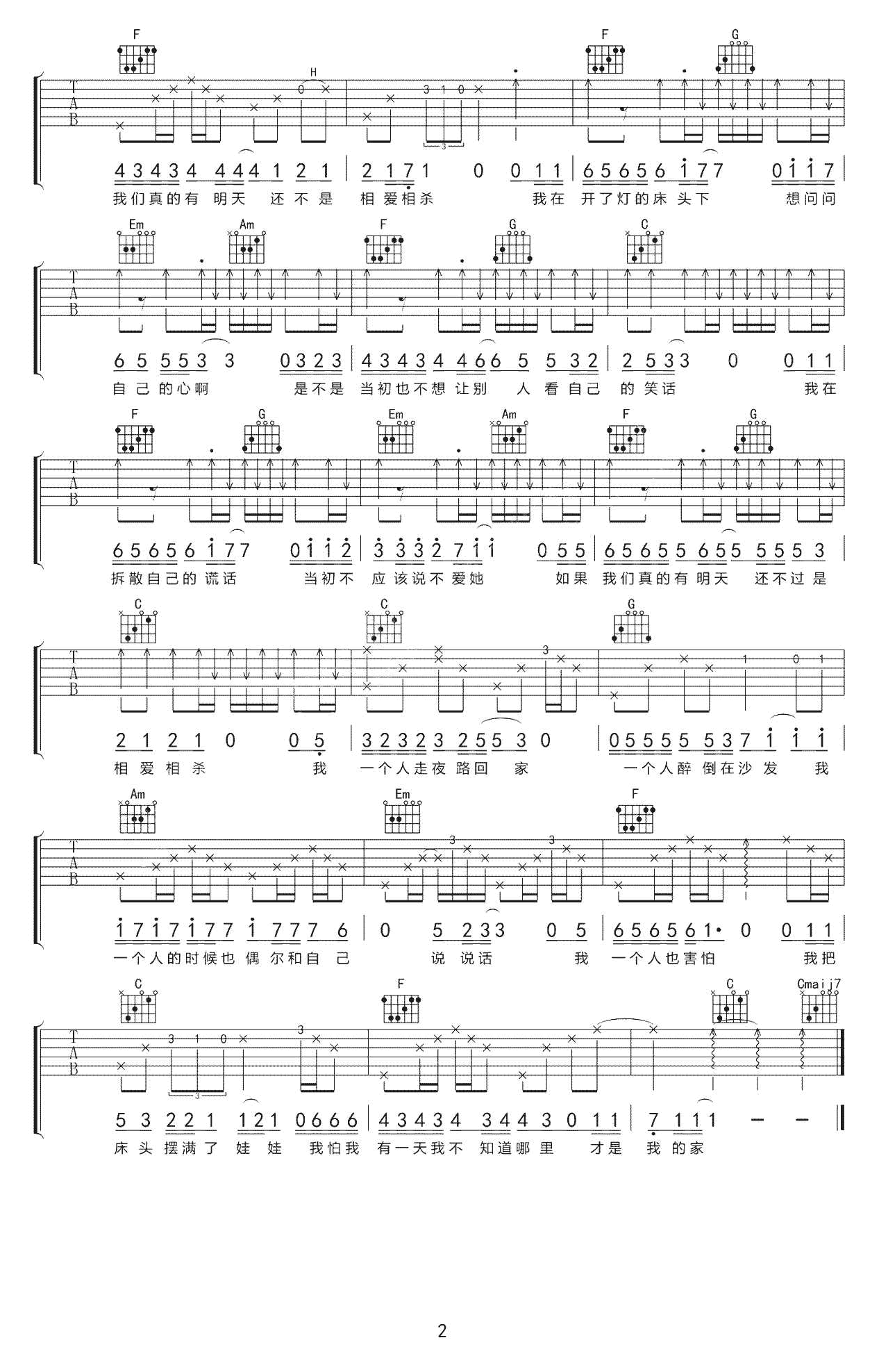 - 安和桥吉他谱 包师语女生版 C调简单弹唱谱