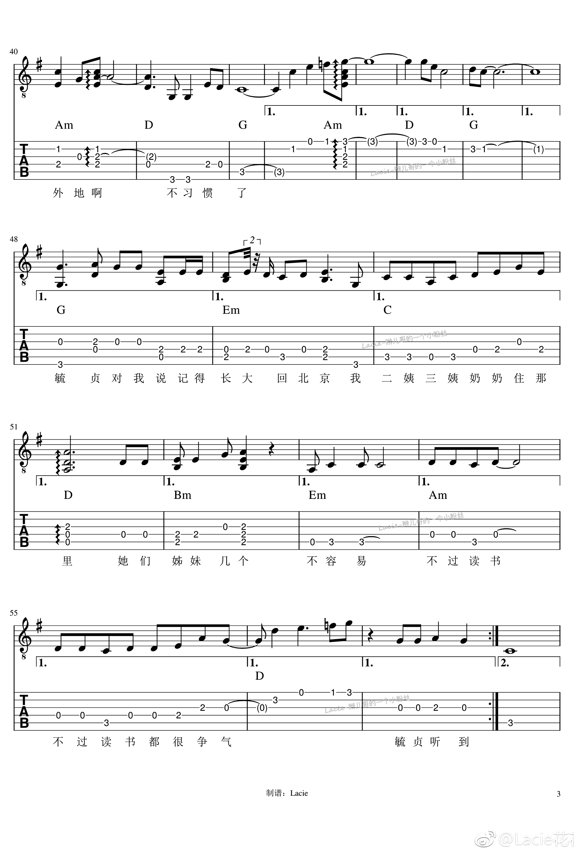 - 迷途的羔羊吉他谱 安子与九妹 G调弹唱谱