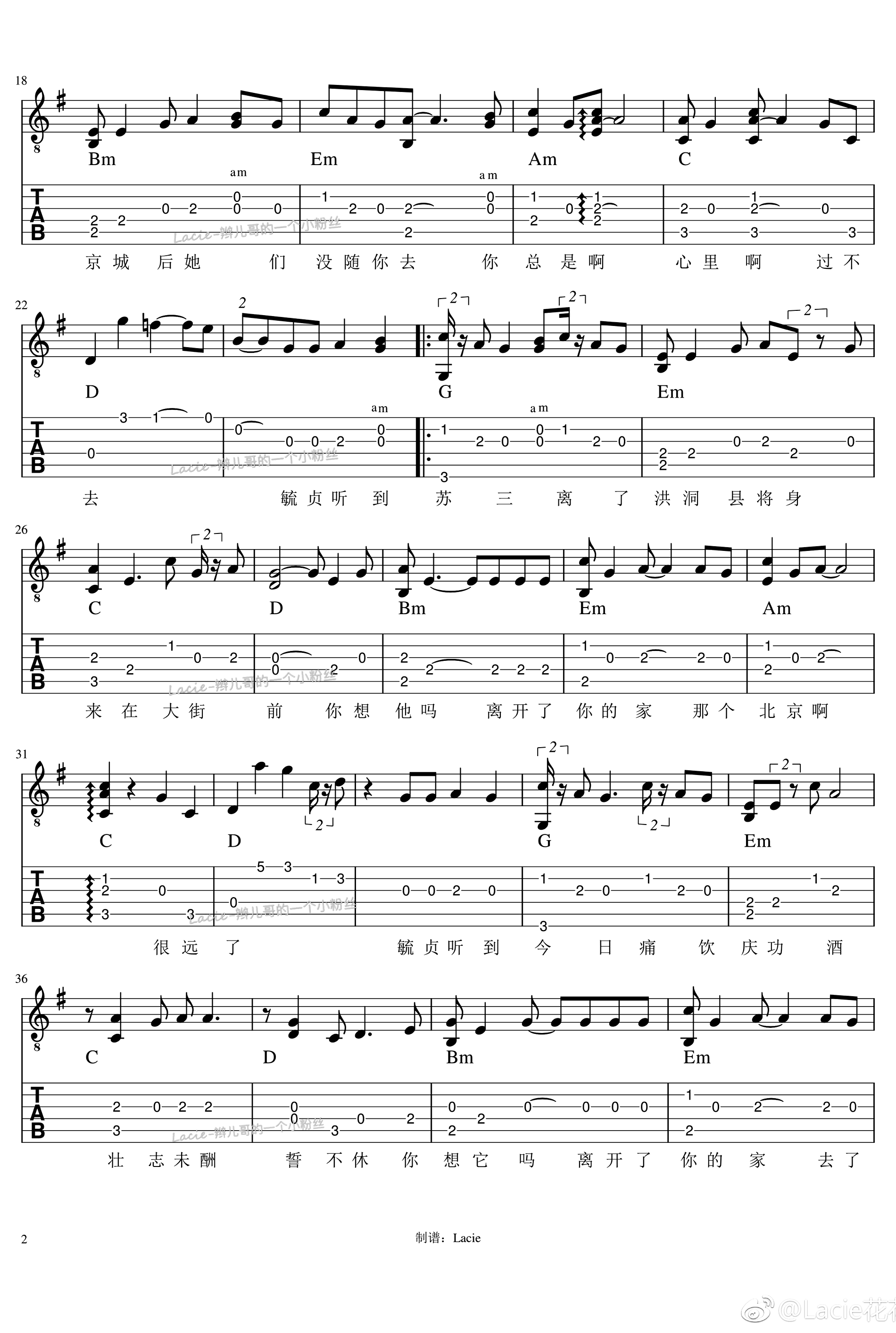 - 秋城吉他谱 丢火车乐队 G调指法 高清六线谱