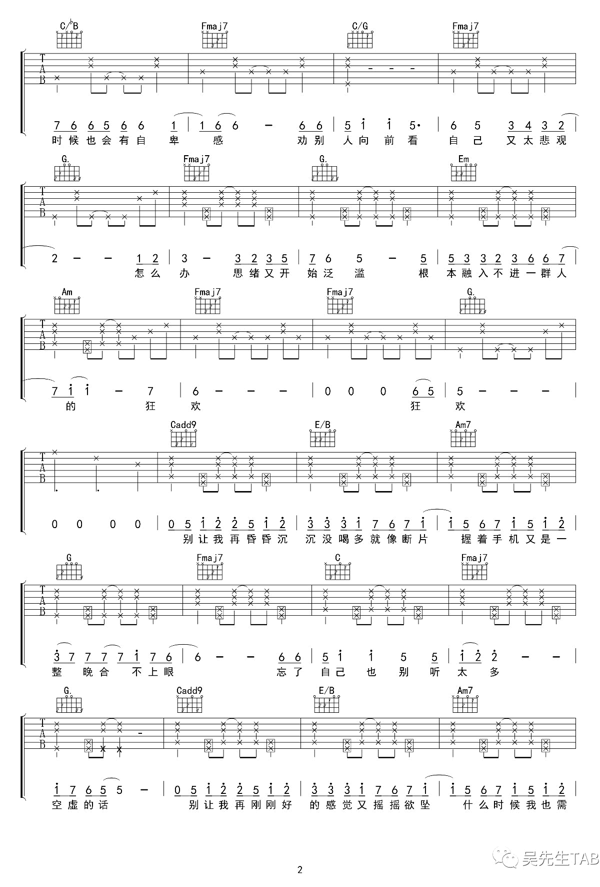 - 孤独她呀吉他谱 二珂 C调指法 弹唱六线谱