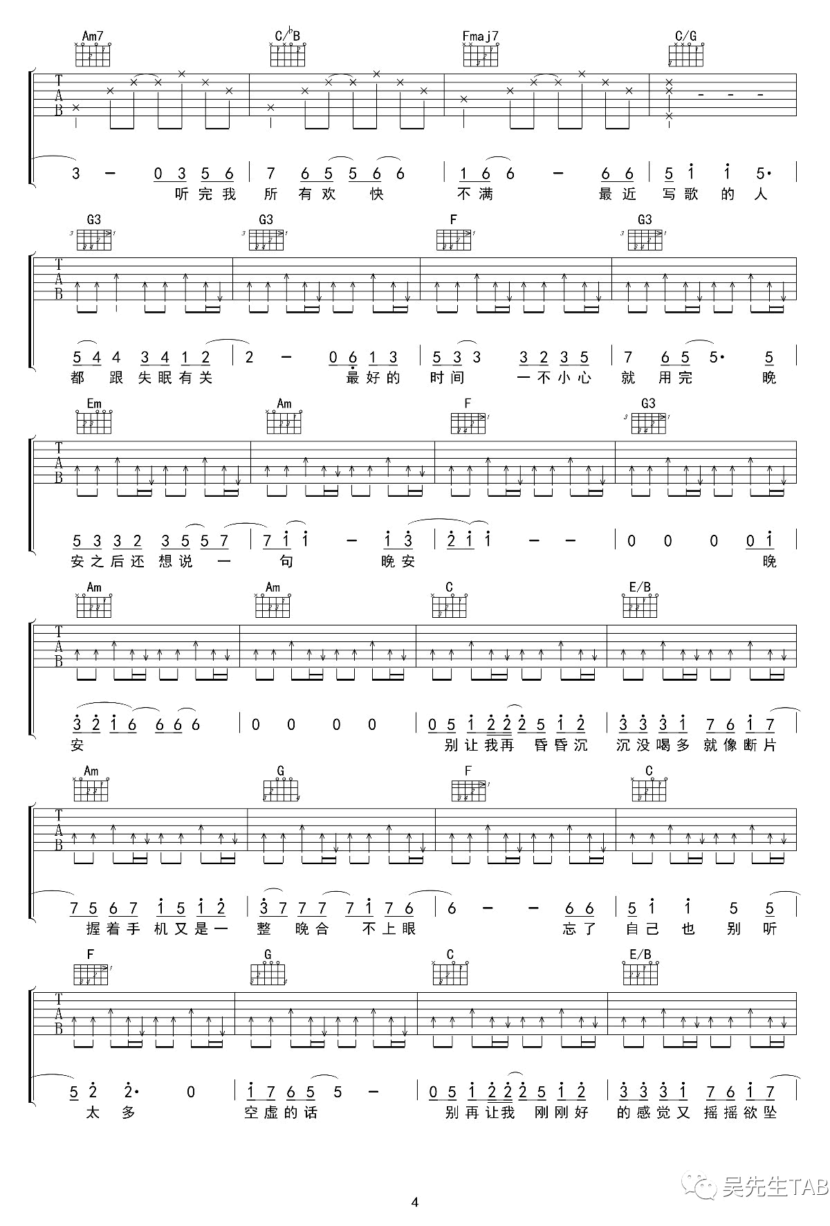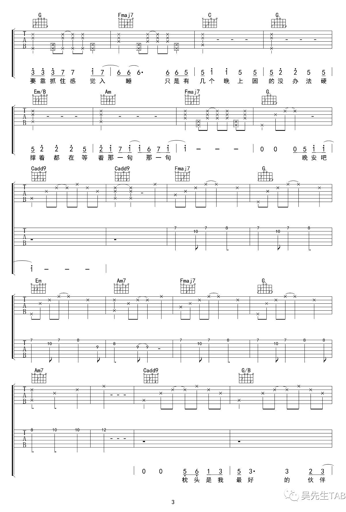 - 凌晨三点吉他谱 陈硕子 C调六线谱 弹唱教学视频
