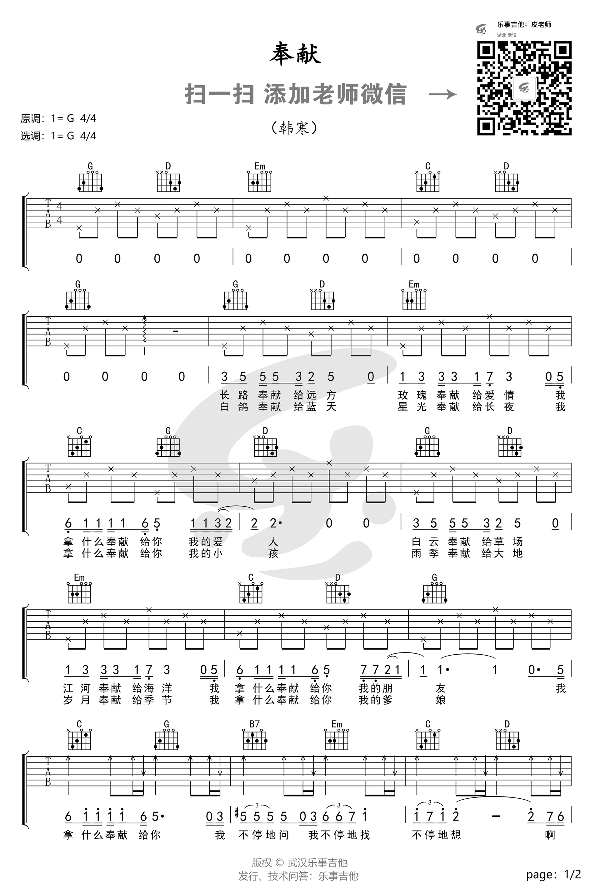 - 苏芮《奉献》吉他谱 G调入门版 韩寒《飞驰人生》片尾曲