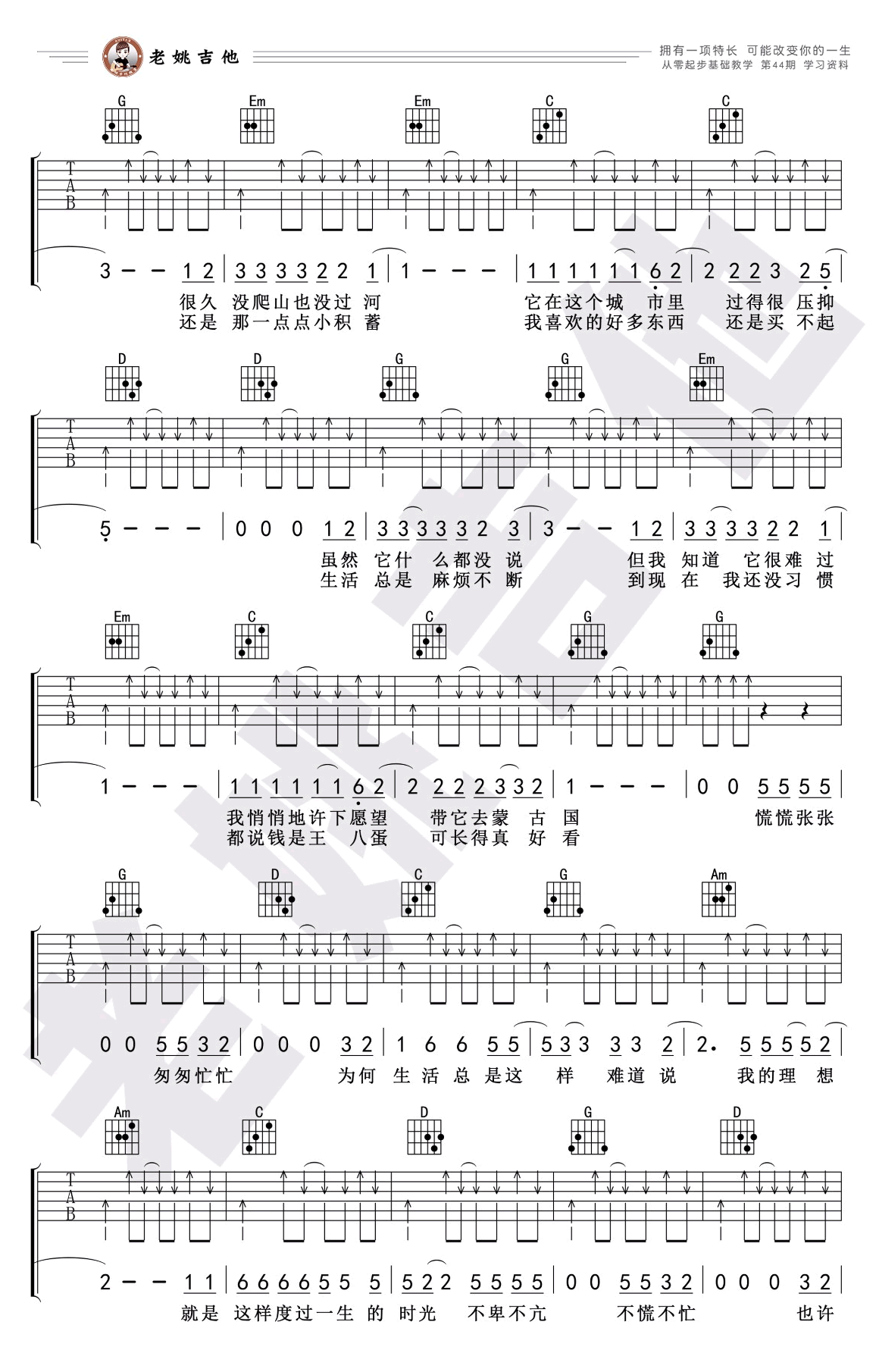 - 胸大的姑娘吉他谱 留声玩具 C调指法 吉他弹唱演