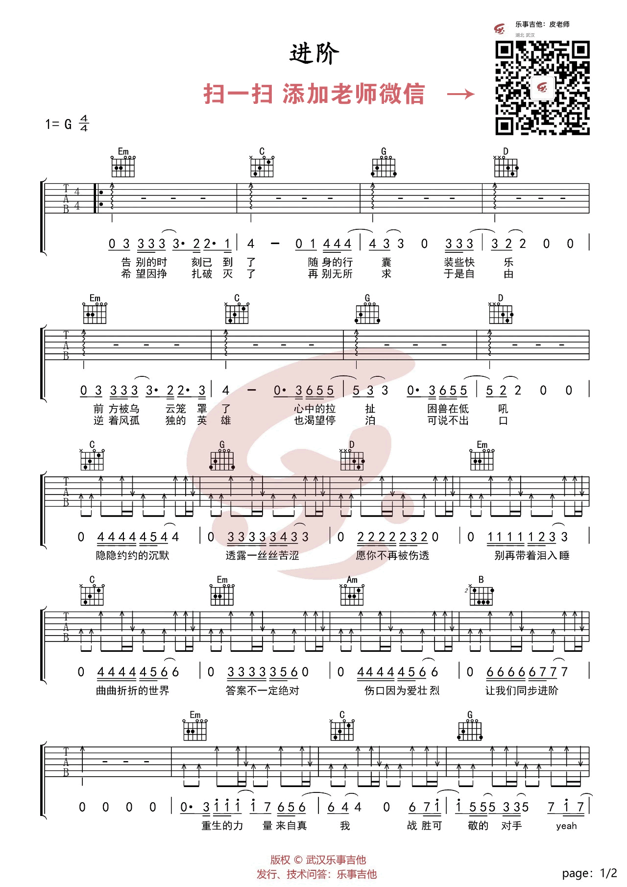 - 林俊杰《进阶》吉他谱 G调弹唱谱 吉他演示视频