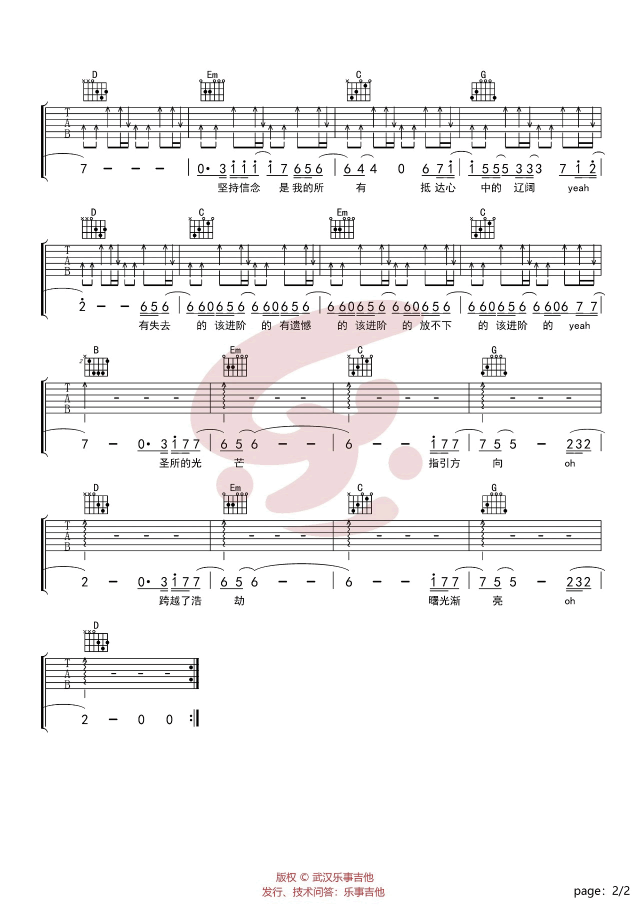 - 追光者吉他谱 C调弹唱谱 岑宁儿《追光者》六线谱