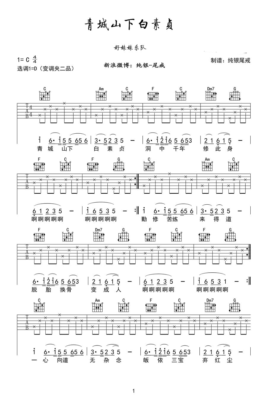 - 青城山下白素贞吉他谱_高清六线谱_好妹妹乐队