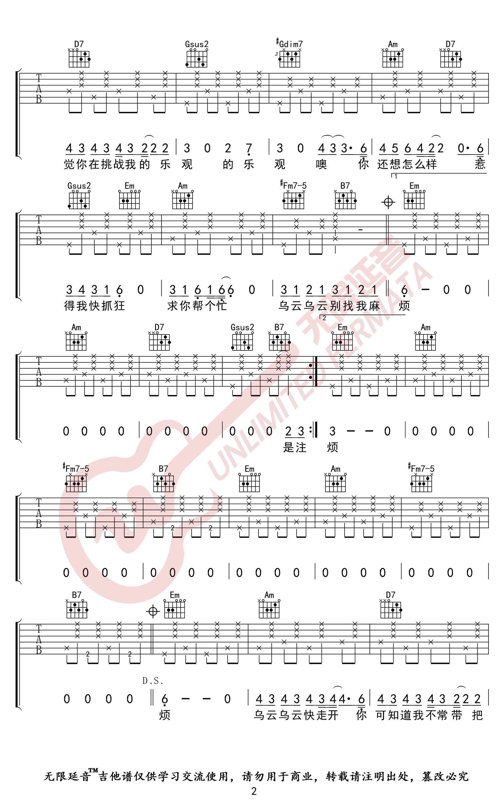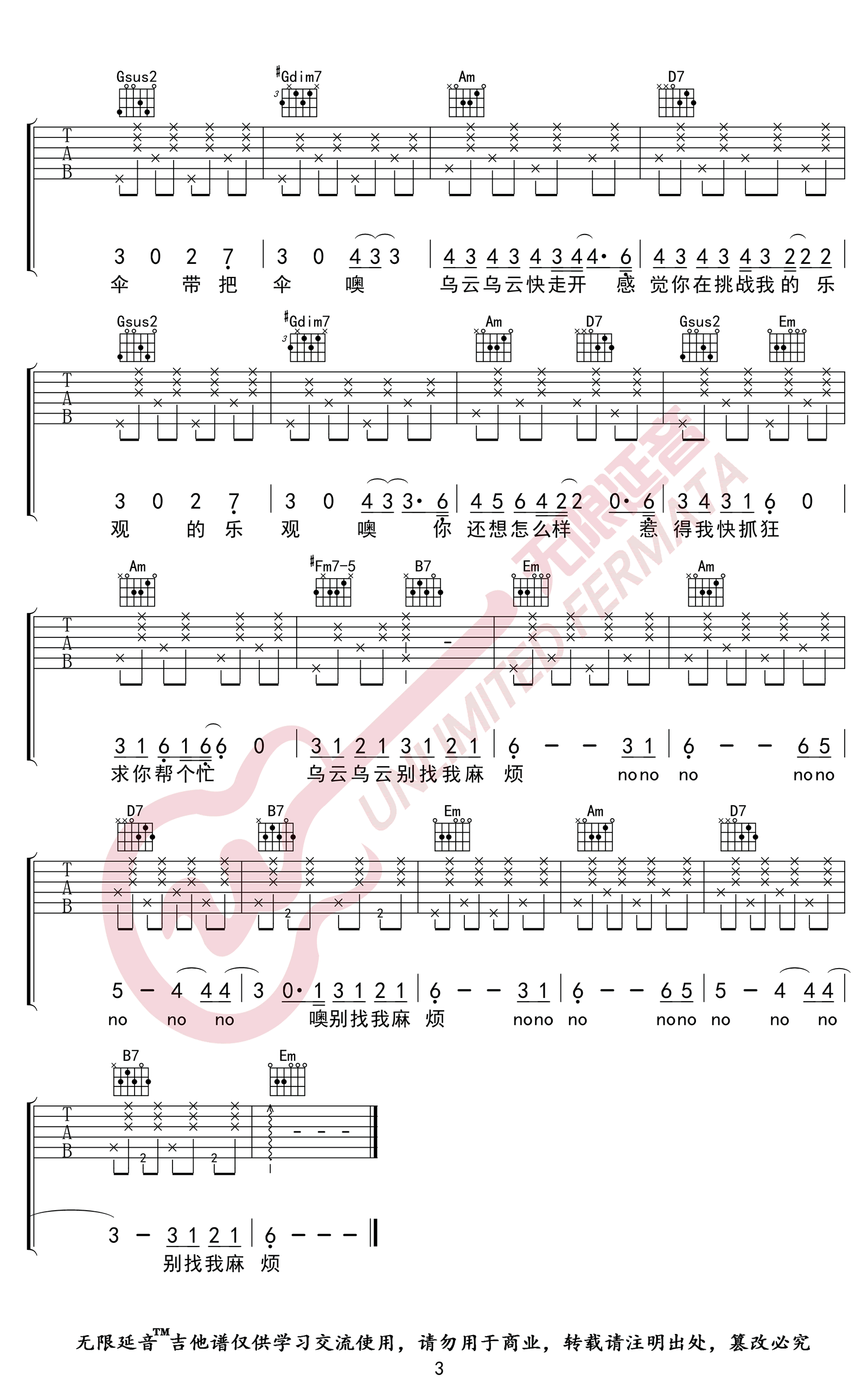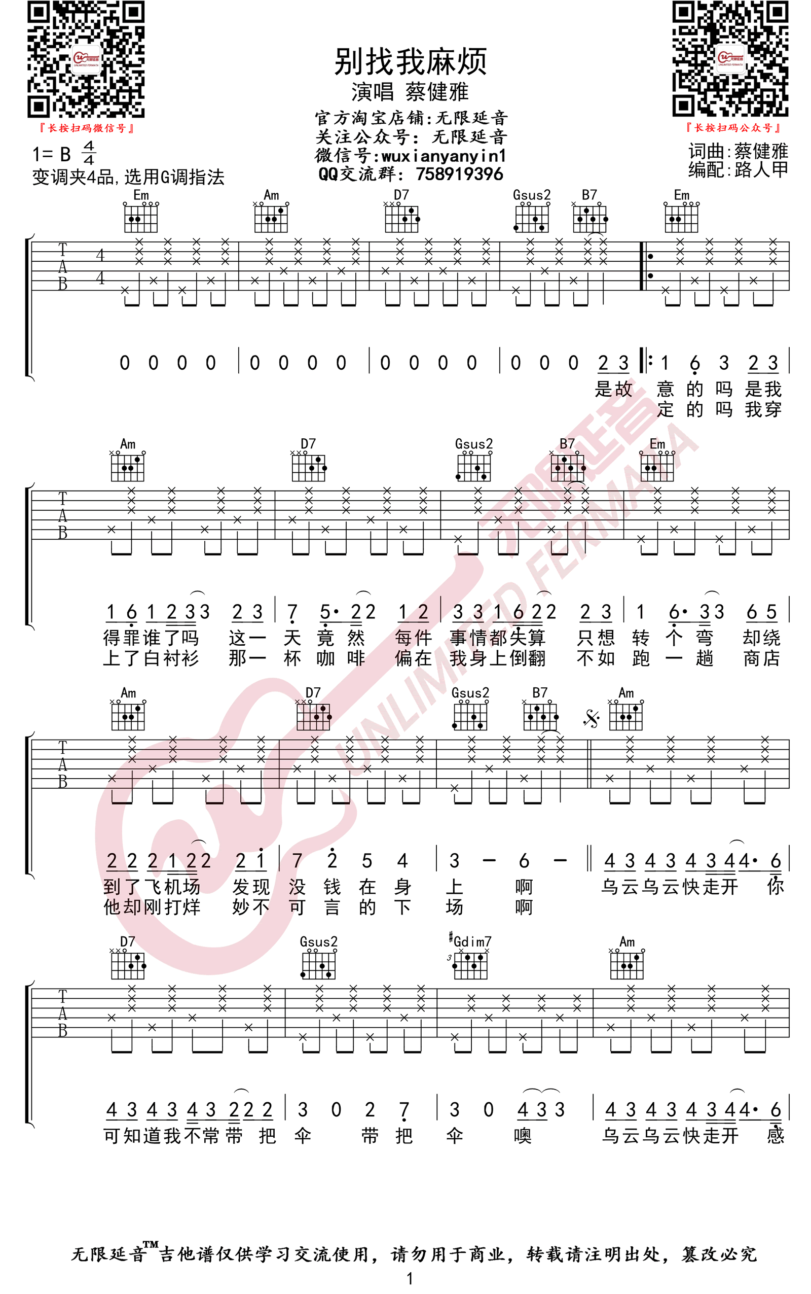 - 别找我麻烦吉他谱 蔡健雅 弹唱教学视频 高清图片谱