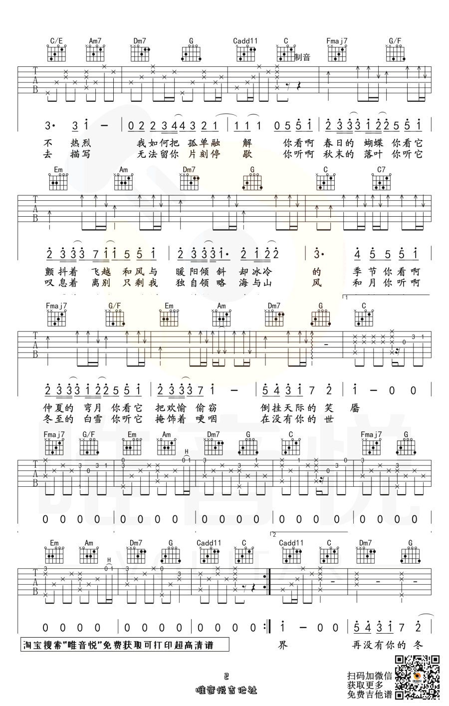- 你的答案吉他谱_阿冗_C调指法_弹唱图片谱