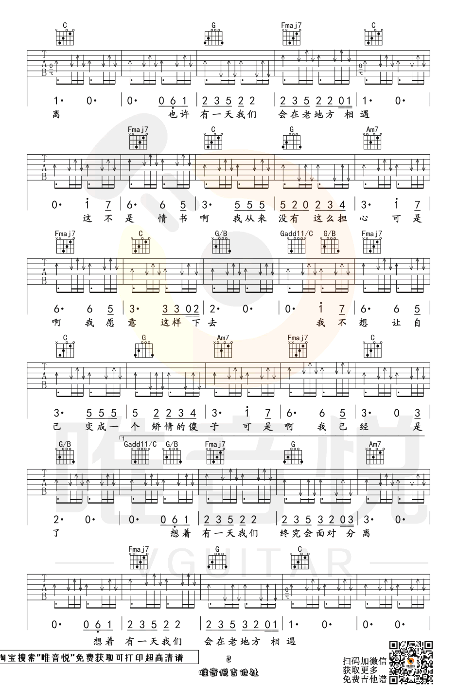- 陪你去流浪吉他谱_薛之谦_C调_高清图片谱