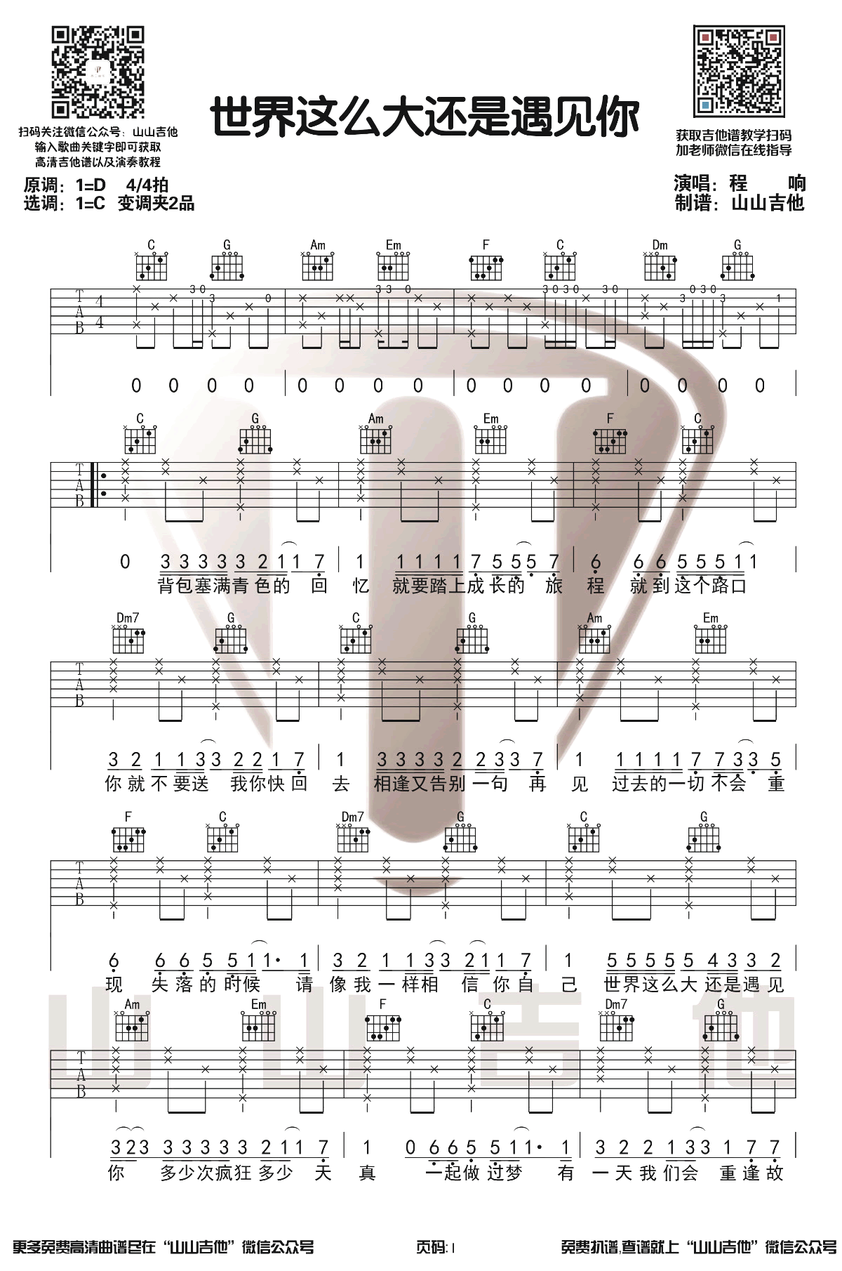 - 世界这么大还是遇见你吉他谱_程响_C调带前奏_弹唱演示