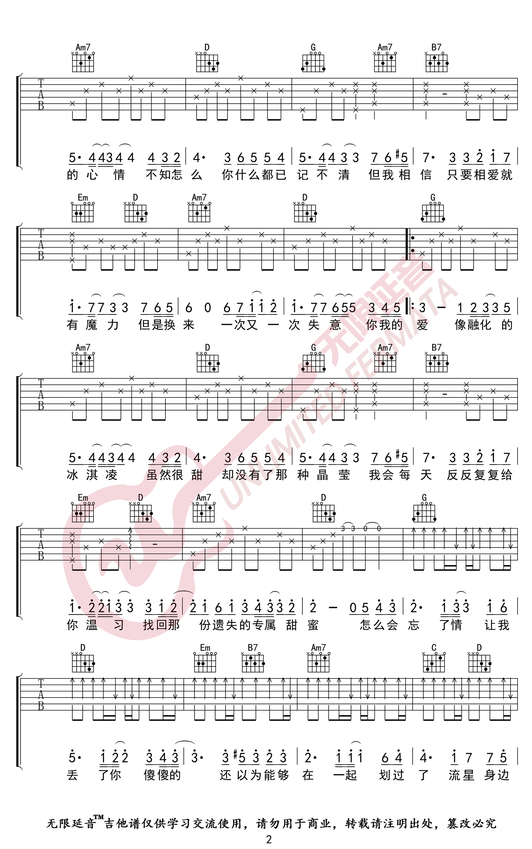 - 最甜情歌吉他谱_红人馆/一玟_C调弹唱谱