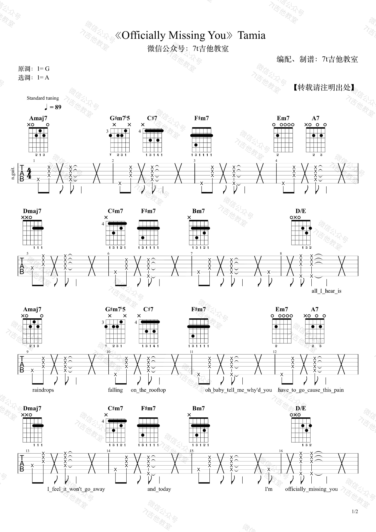 - Officially Missing You吉他谱_Tamia_弹唱演示视频