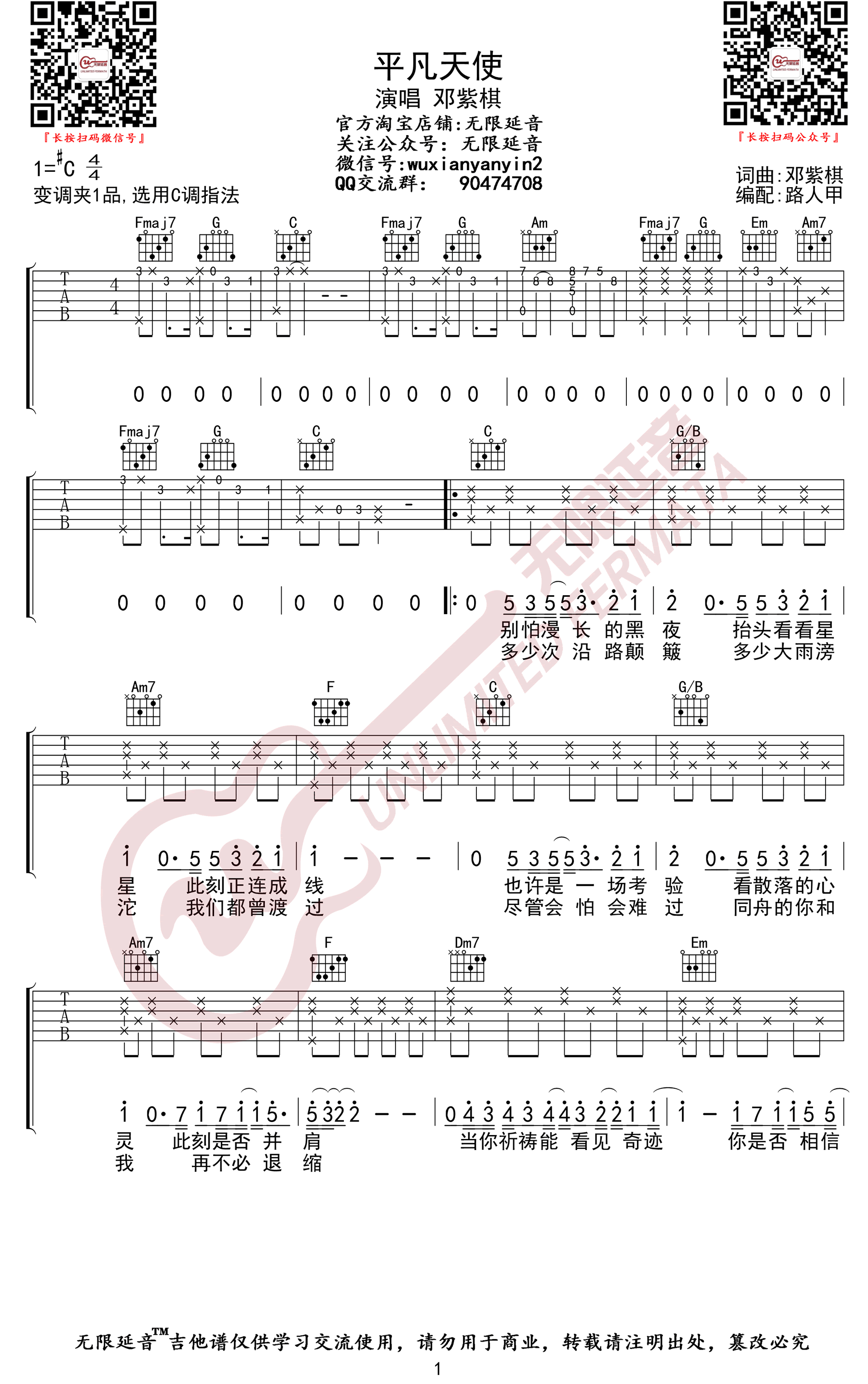- 平凡天使吉他谱_邓紫棋_C调弹唱谱_图片高清版